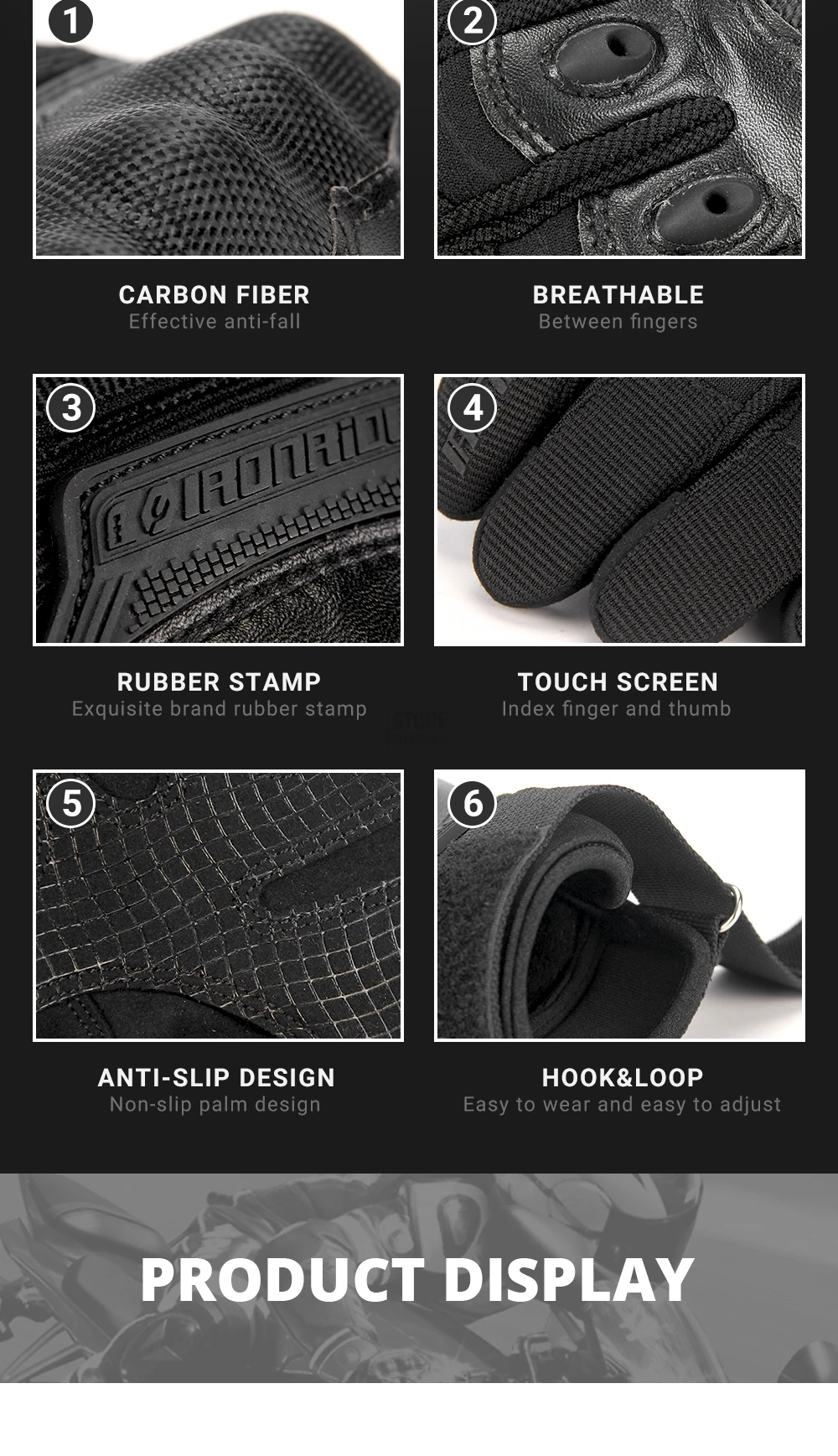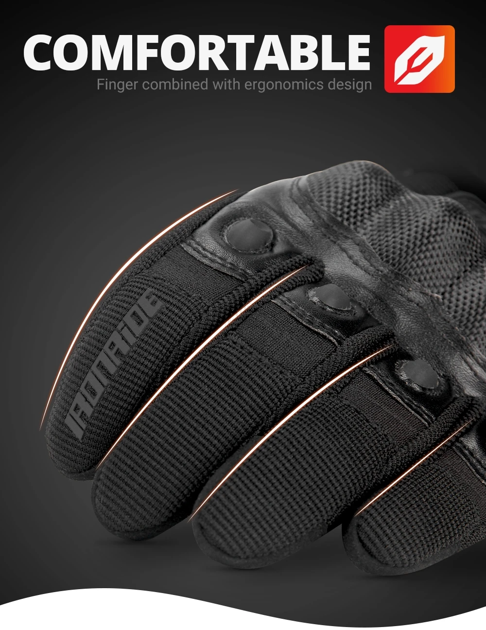 Особенности:Стильный дизайн и привлекательное мастерство.Эргономичный дизайн пальцев, улучшенная гибкость и удобство во время езды.Подкрепление ладони защищает руки от ударов и истирания.Улучшенные функции сенсорного экрана поставляются с двумя пальцами. Так что вы можете легко использовать сенсорный экран и телефон.Широкая защита на тыльной стороне с жестким волоконным корпусом, эффективно защищает ваши руки от столкновений.Ладонь с носимым дизайном Пупа, прикрепленная рука не легко скользит.