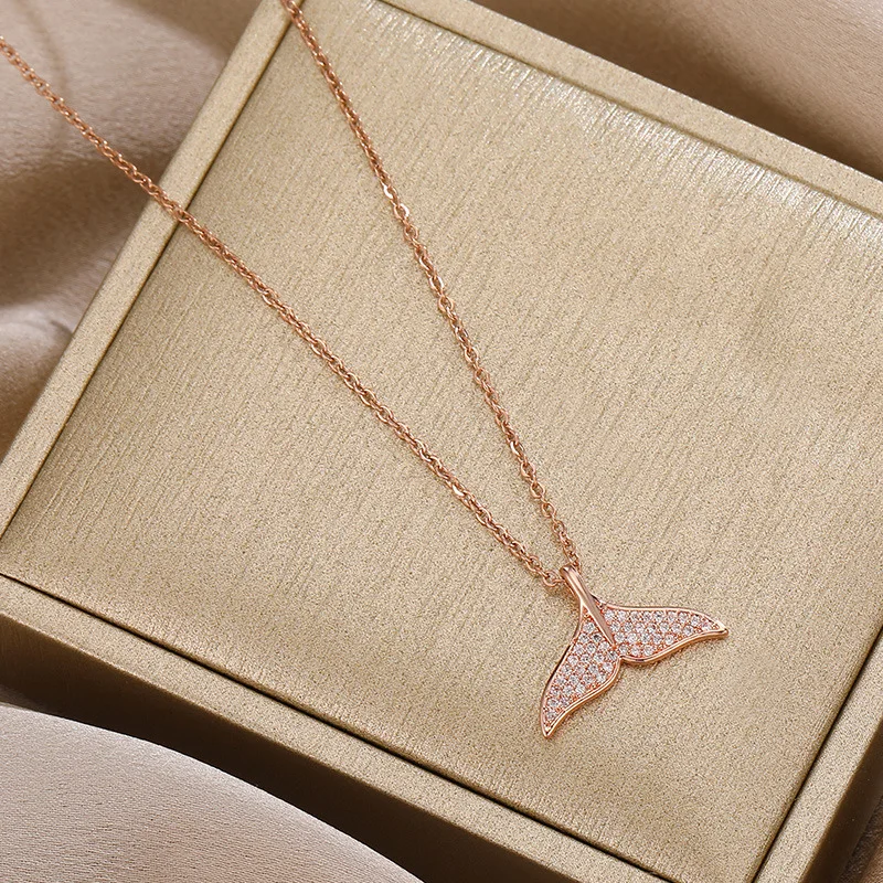 Ожерелье женское из титановой стали, с покрытием розового золота Подвеска в виде русалки пробы, 2020