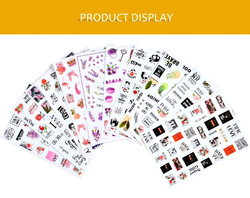 Наклейки для ногтей с буквами, цветами, растениями, лицевыми узорам...