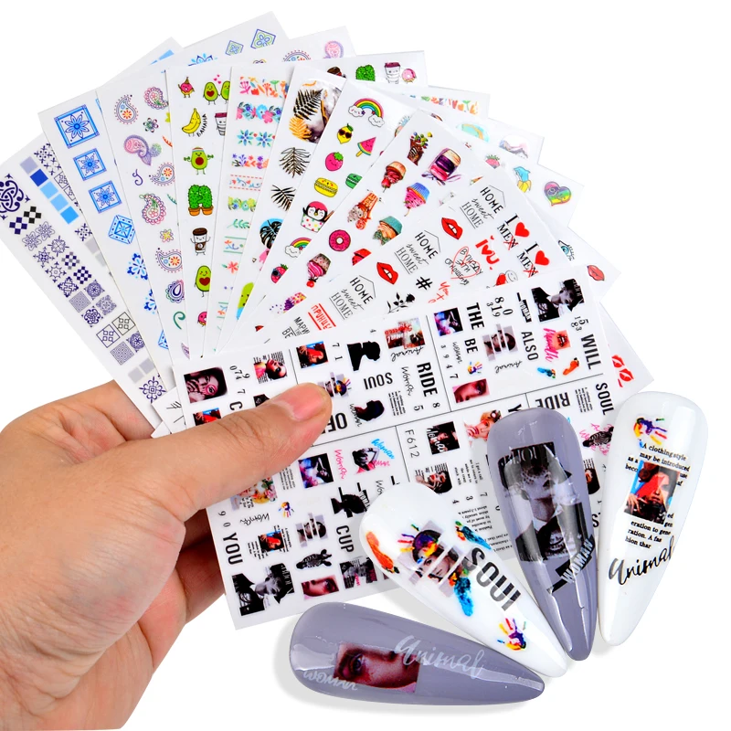 Наклейки для ногтей с буквами, цветами, растениями, лицевыми узорам...
