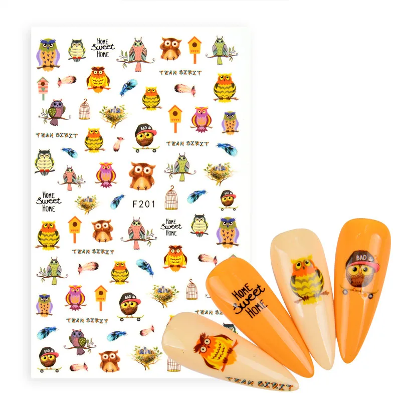 1 шт. 3D наклейки для ногтей с персонажами из мультфильмов, с рисунком Совы белка кролик Ежик олень с цветочным дизайном для наклейки для ногтей DIY Украшение для маникюра