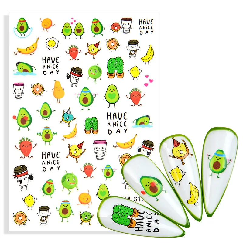 1 лист, новые 3D наклейки для ногтей, Мультяшные наклейки для ногтей, фрукты, ананас, авокадо, банан, наклейки для ногтей, фольга, клейкие наклейки, украшения для дизайна ногтей