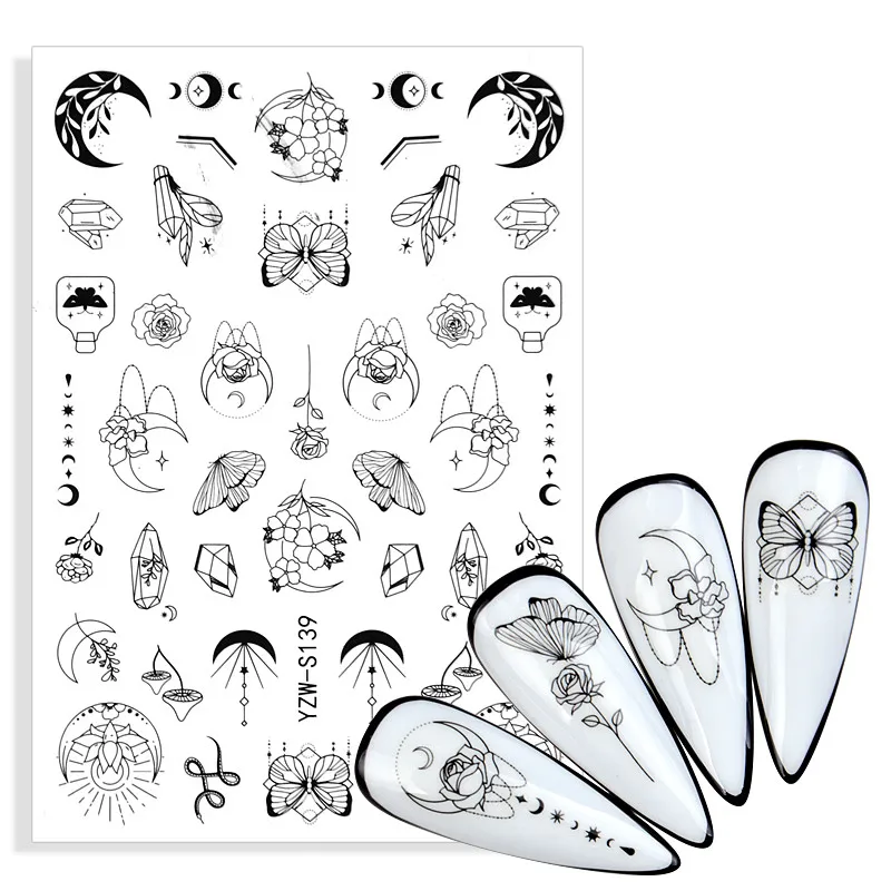 2022 новые 3D наклейки для ногтей черно-белые Геометрические Цветоч...