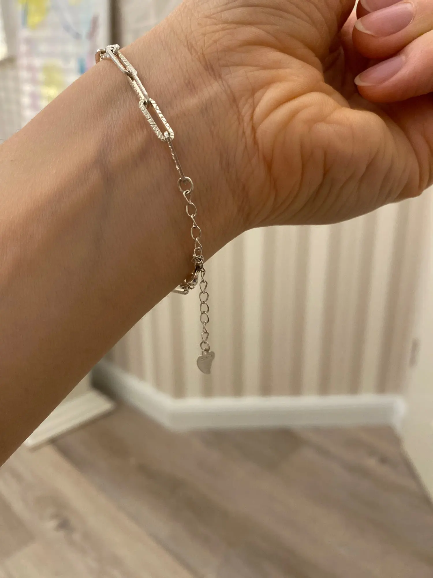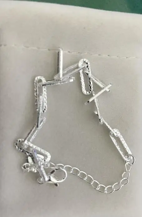 Браслет серебристого цвета со светящимися вставками средней длины, не выглядит как Настоящее серебро