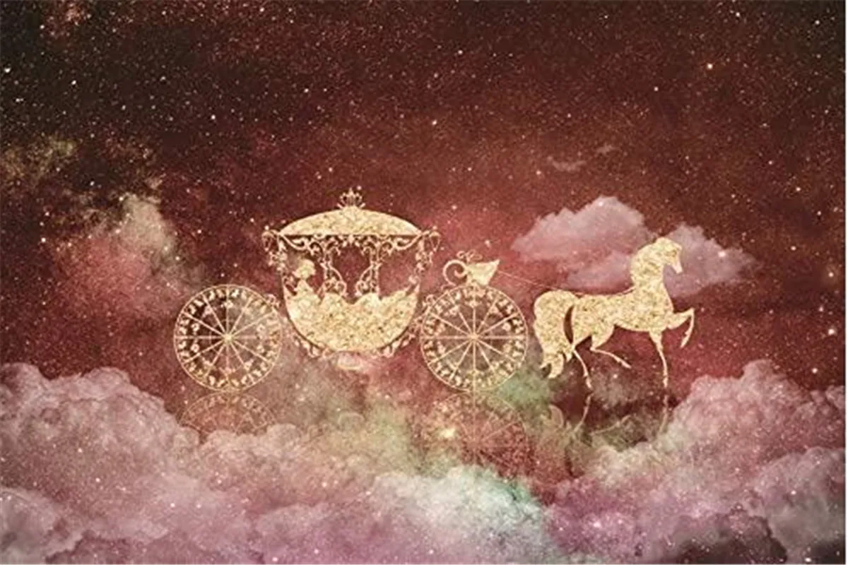 Фон для фотосъемки с изображением мультяшной кареты Золушки розового абстрактного звездного неба Золотой Фон для фотосъемки вечеринки в честь Дня Рождения Ребенка