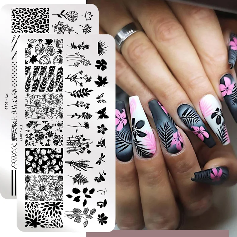 Пластины для стемпинга ногтей PICT YOU Flower, линейные картины, пластины для нейл-арта, шаблон для штампа, мраморные листья, инструменты для печати на ногтях