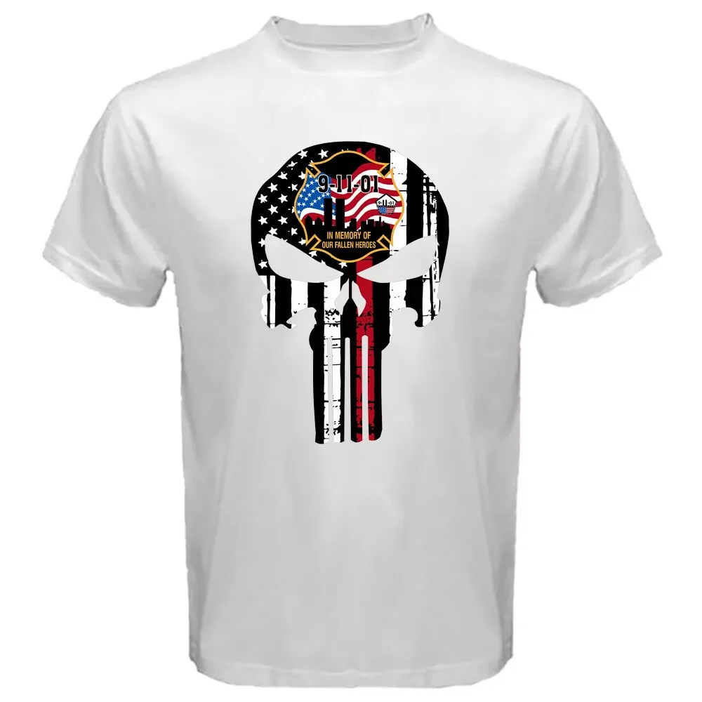 Белая Военная патриотическая тактическая Мужская футболка США череп с американским флагом Punisher