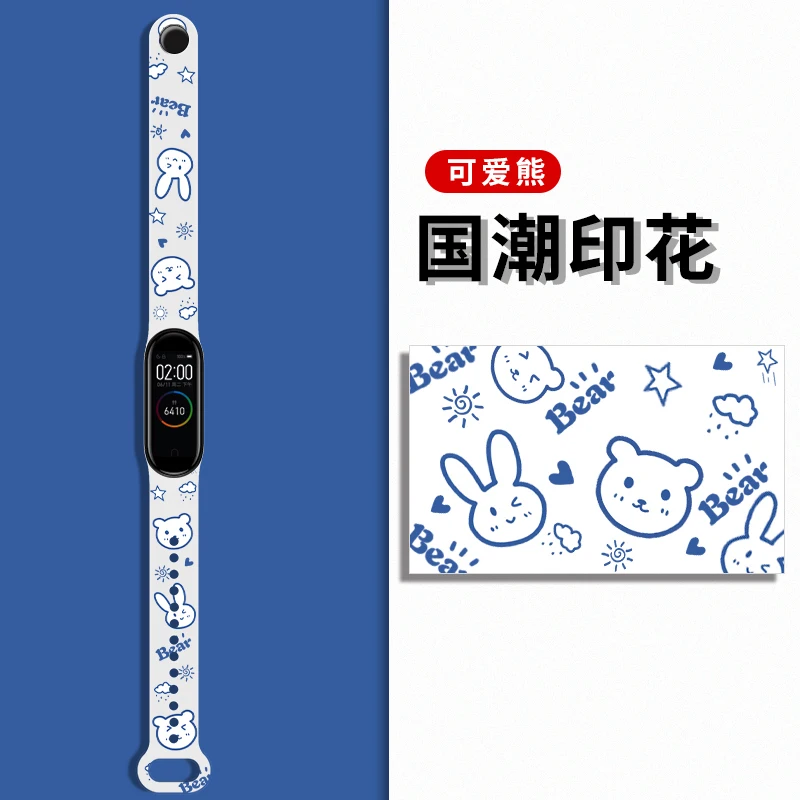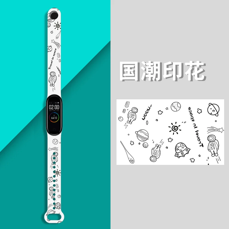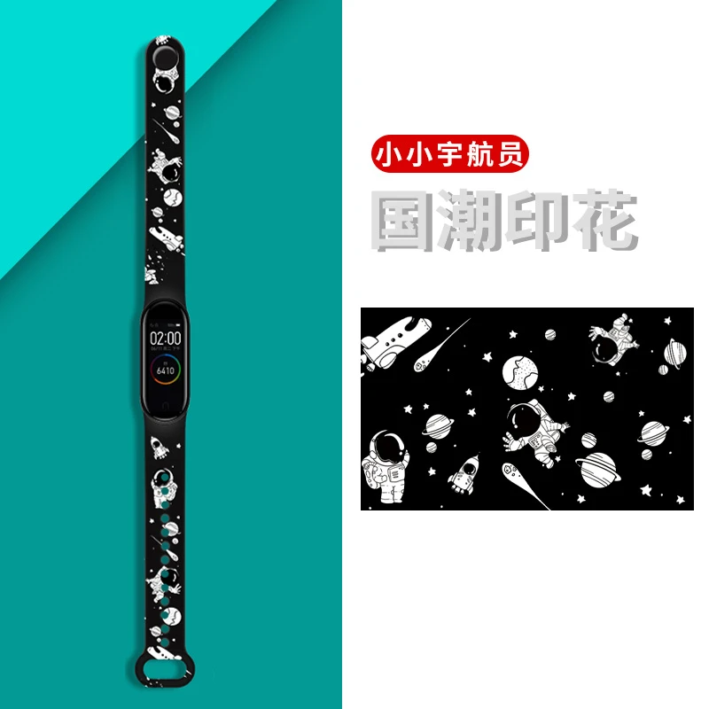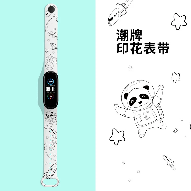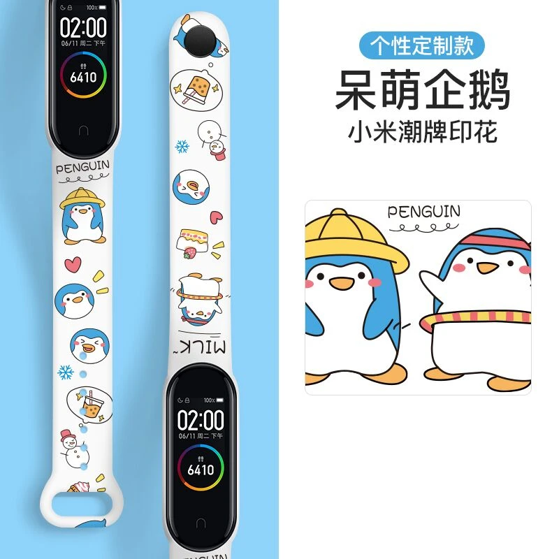 Силиконовый ремешок для Mi Band 6, 5, 4, 3, с рисунком из мультфильма, браслет для смарт-часов Xiaomi, спортивный фитнес-браслет