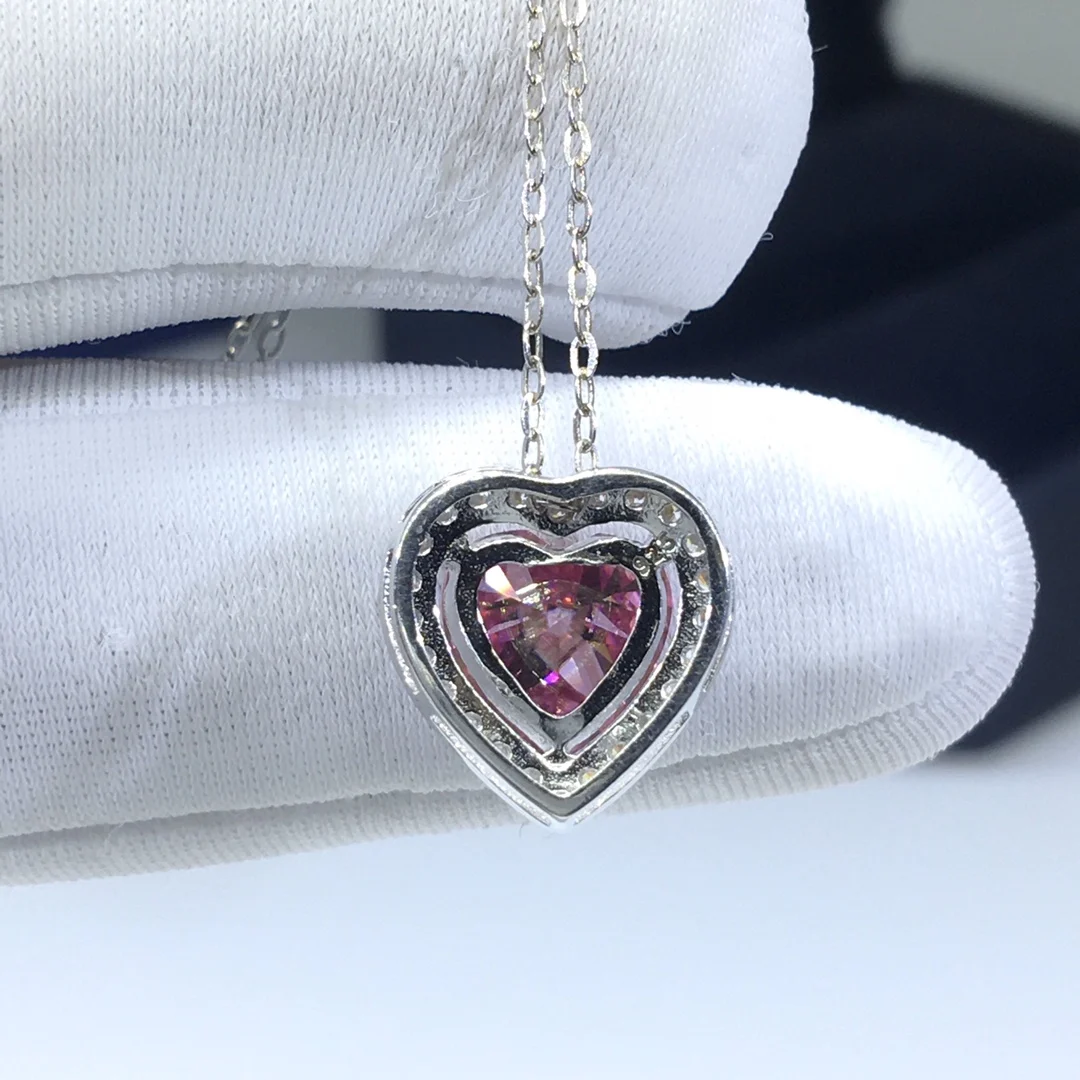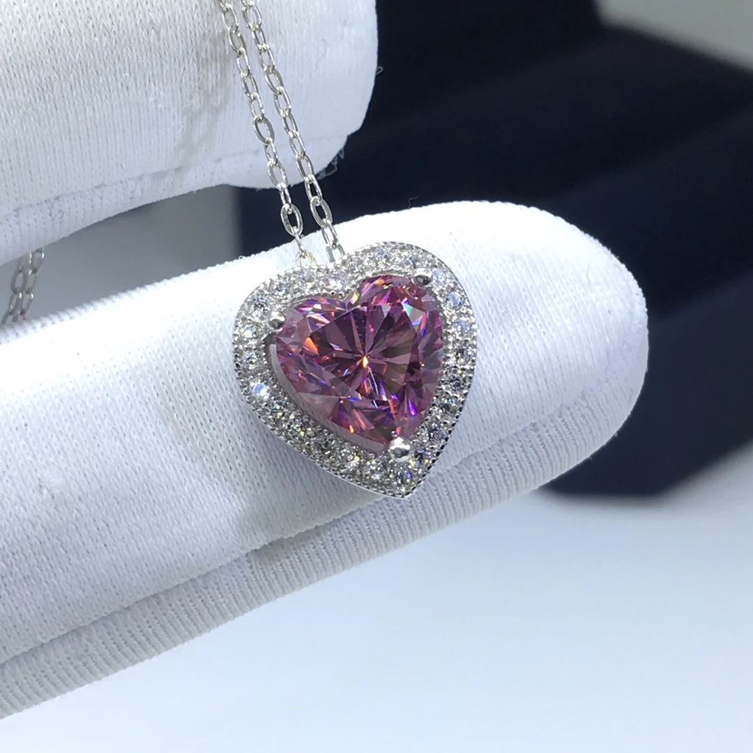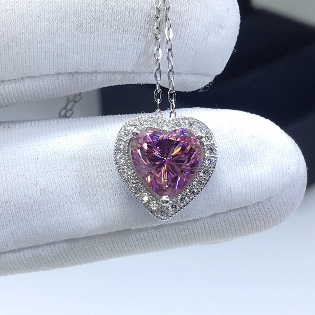 Серебро 925 Оригинальный бриллиантовой огранки 2 карат алмазов Тесты Последние Сверкающие розового цвета с сердечком и Форма синтетический драгоценный кулон Цепочки и ожерелья