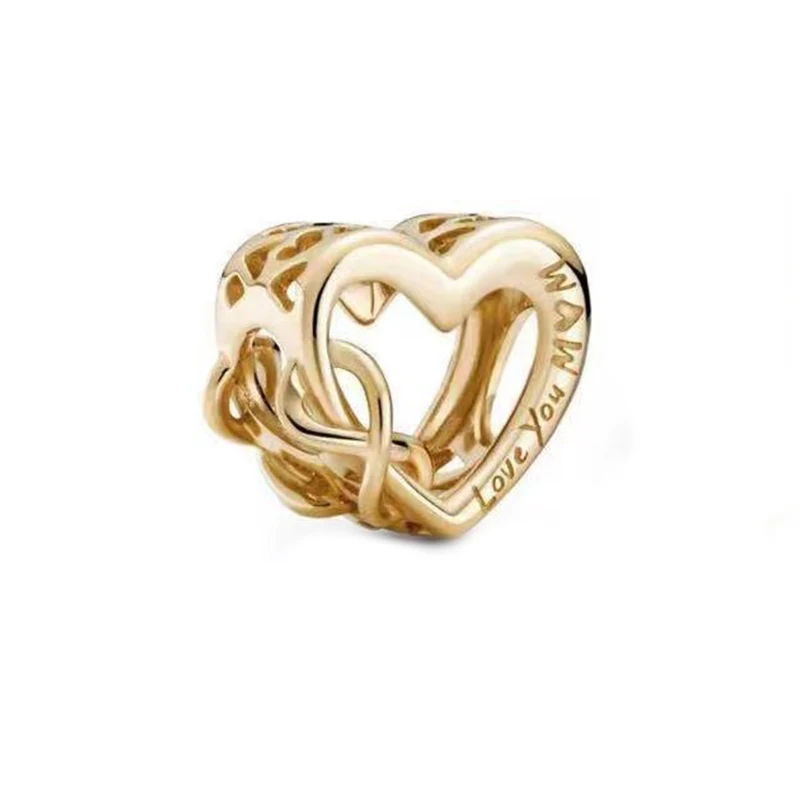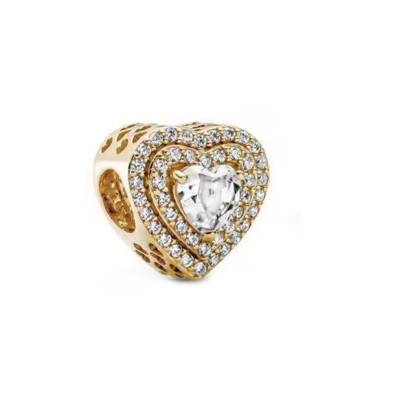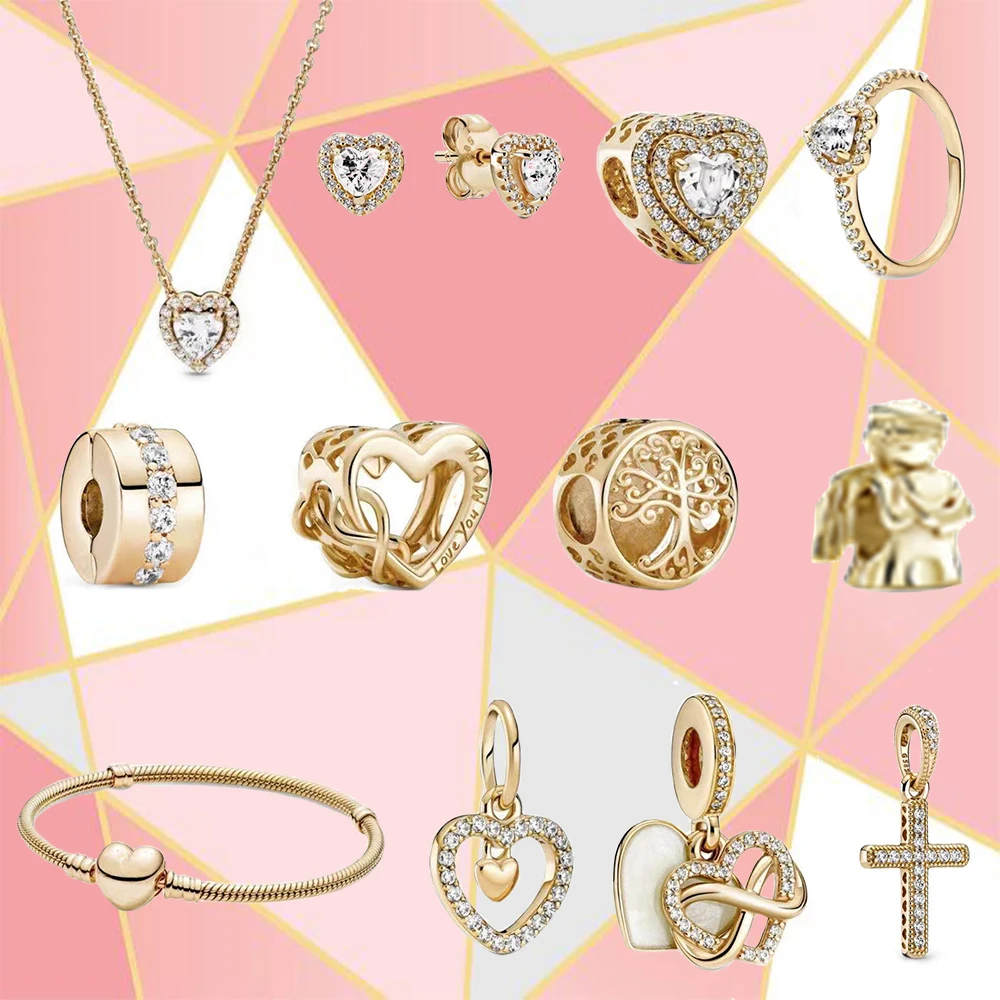 925 стерлингового серебра Игристые крест кулон ажурный Ангел любви очаровательного золотого цвета, подходят к оригинальному браслету Сделай Сам женские ювелирные изделия