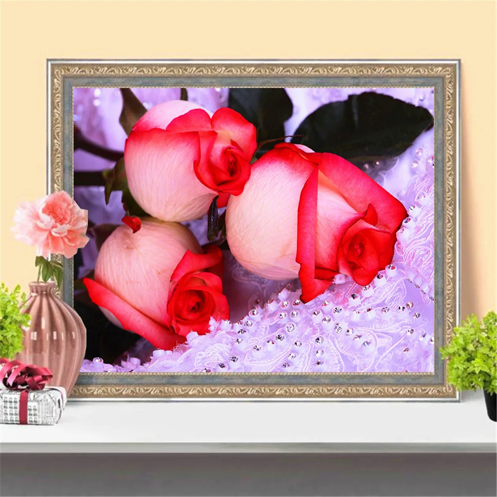 Размер холста 5d Сделай Сам полный квадраткруглая Алмазная картина роза цветок Сделай Сам Алмазная вышивка крестиком украшение для дома