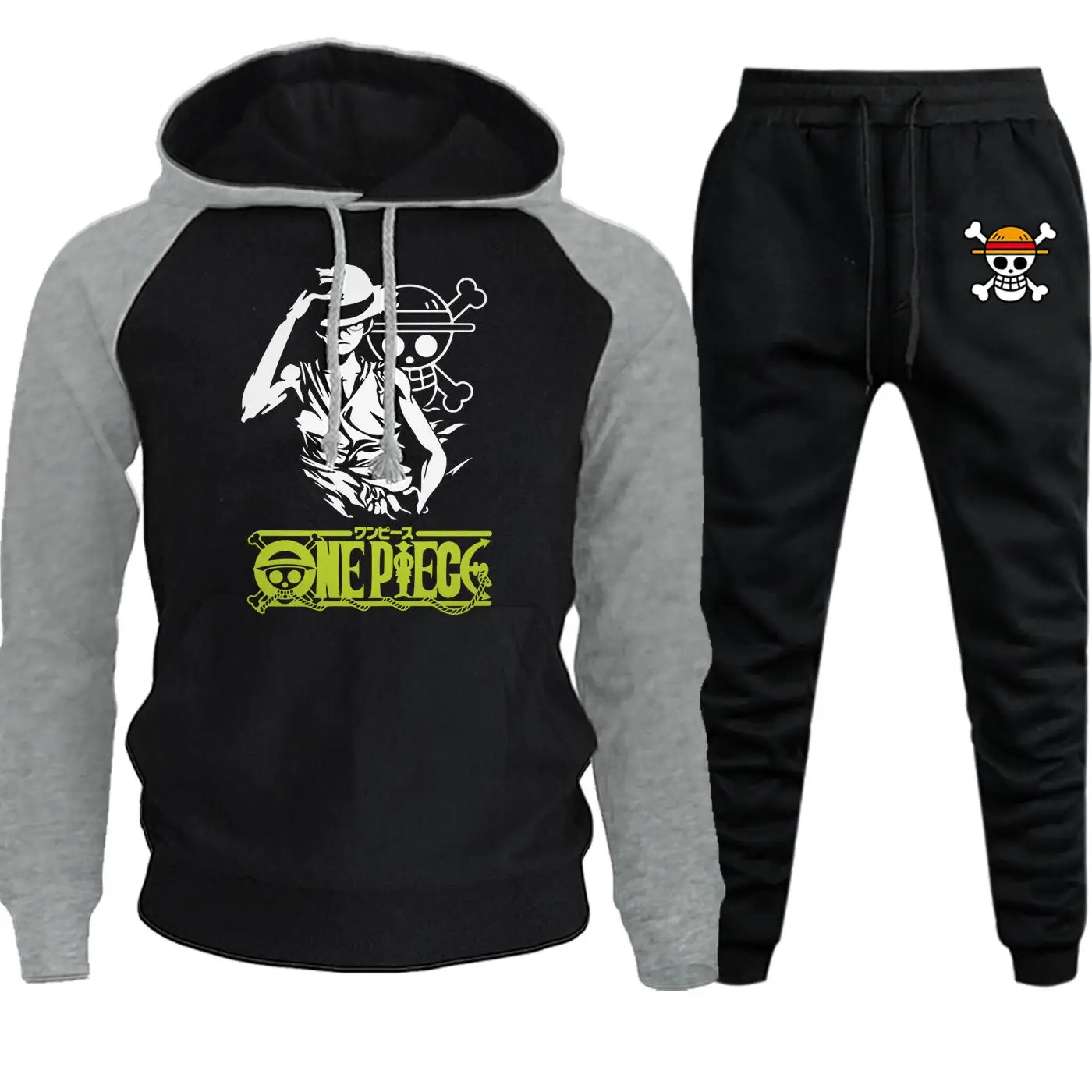 Соломенная шляпа из японского аниме, Мужская Уличная одежда, с капюшоном реглан, новый мультяшный костюм, флисовый пуловер, толстовка + штаны, Осень-зима 2021, комплект из 2 предметов