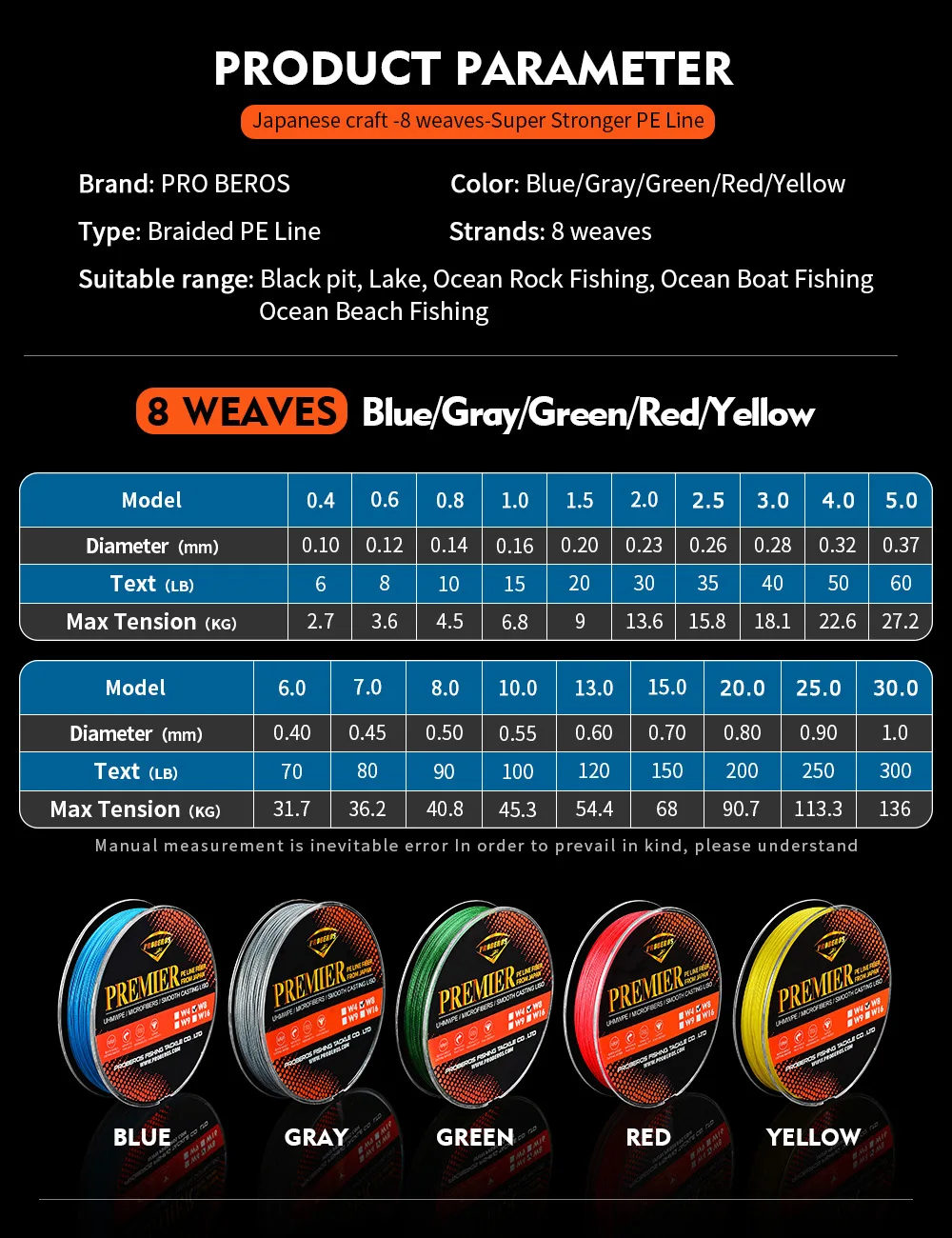 Pro Beros 8 серии леска 100 м сильная лошадь Pe рыболовная катушка, 5 цветов в ассортименте Pe провод 0,4 #-13 # тканые Pe рыболовная леска Шестерни