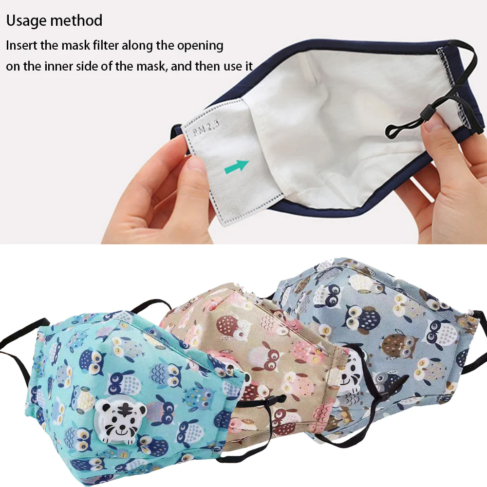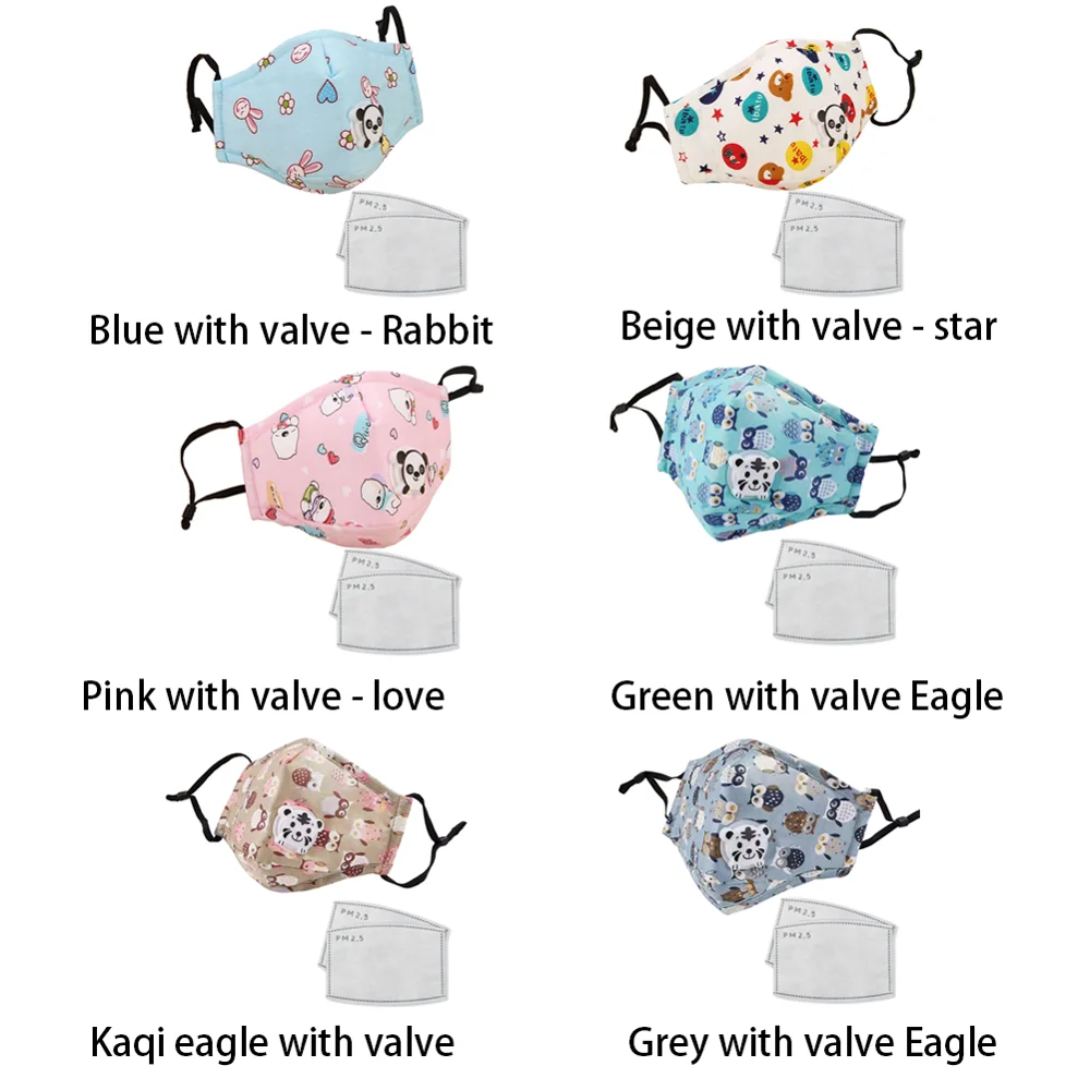 Милая моющаяся маска для рта PM2.5 с клапаном, детская противодымча...