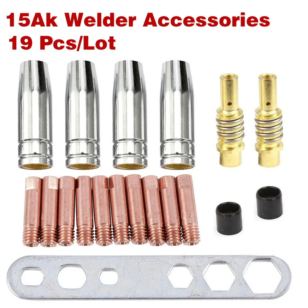Набор деталей для сварочной горелки, 19 шт., коническое сопло, втулка, стержень, набор инструментов для сварочной горелки Binzel 15AK MIG MAG, аксессуары для сварочной горелки