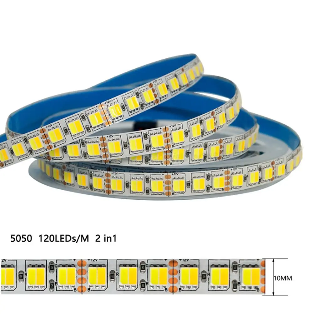 Светодиодная лента 5 м 120led sm 5050 5025 CCT WW + CW, двойная белая светодиодная лента с регулируемой цветовой температурой, светодиодный в 24 В, водонепроницаемая светодиодная лента IP20 IP65