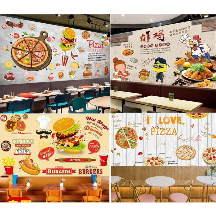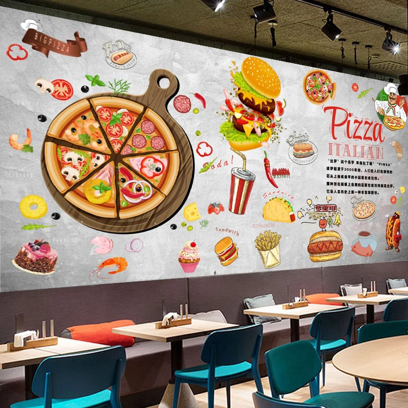 3D пользовательский магазин гамбургеров, пицца, простые Настенные обои для еды, жареная курица, закуска, бар, западный ресторан, молочный чай, магазин обоев