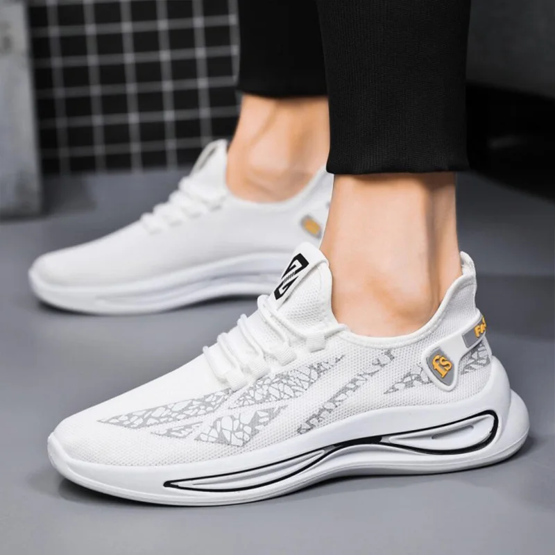 Кроссовки мужские сетчатые дышащие, удобные легкие кеды, повседневные Мягкие кроссовки, белые, весна-лето