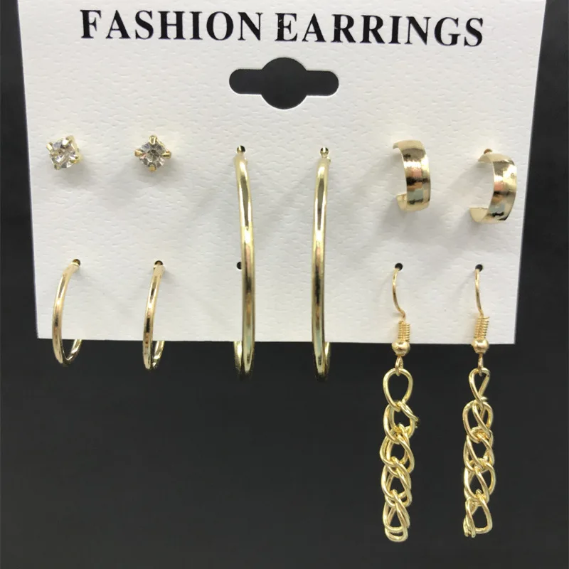 2021 5 паркомпл. большой круг круглые серьги-кольца Комплект сережек для женщин, модные сапоги в панковском стиле, сапоги в Шарм золотого цвета с украшением в виде кристаллов серьги вечерние ювелирные изделия Brincos