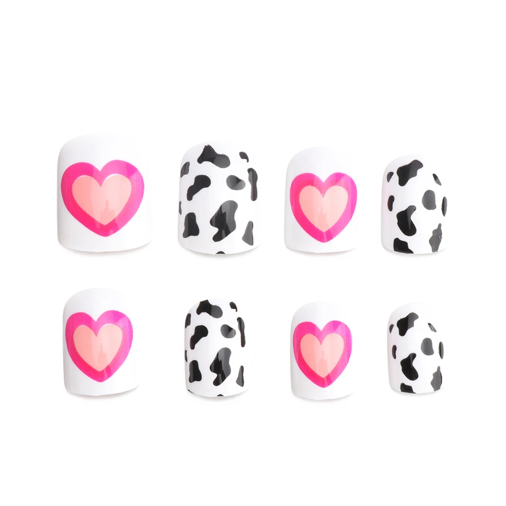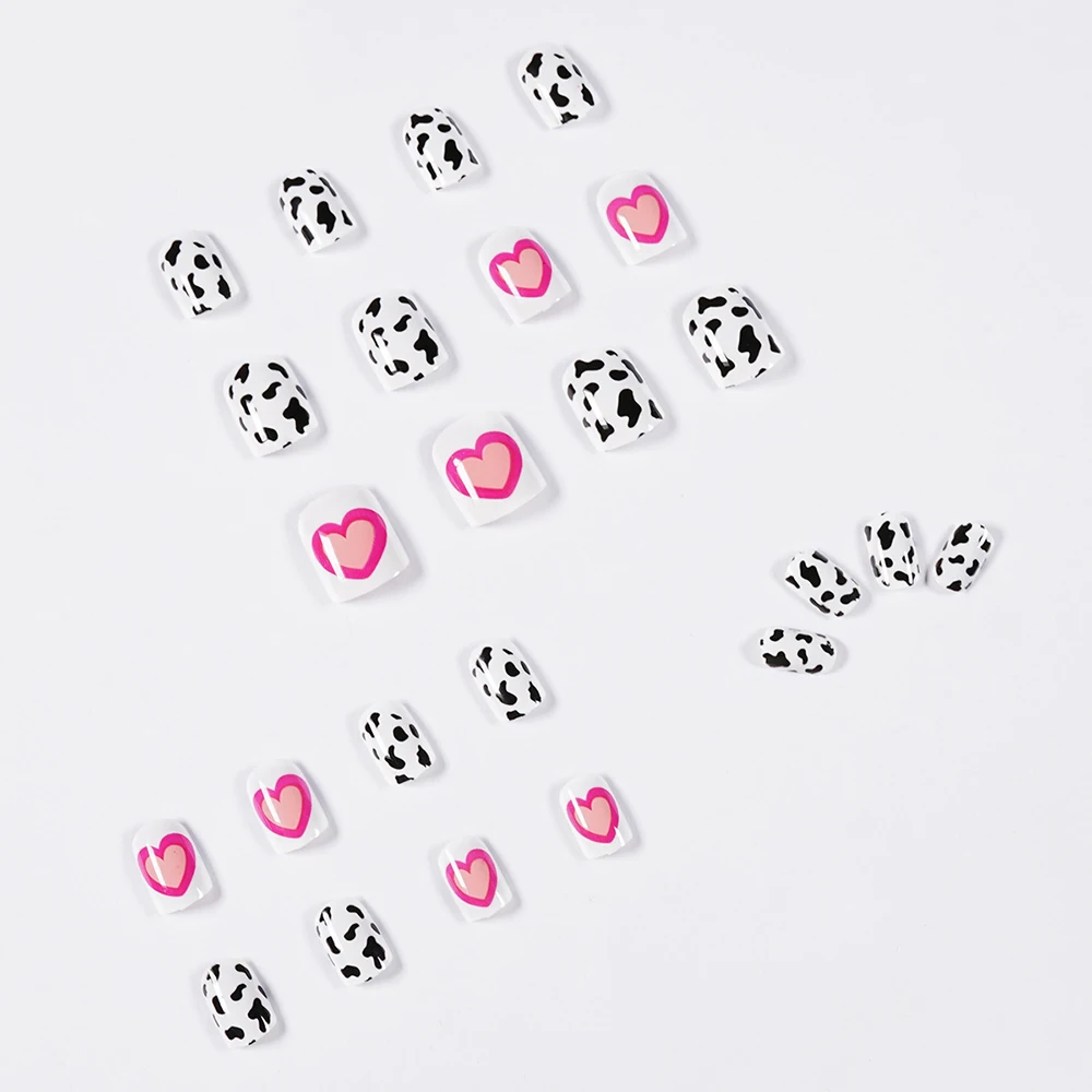 24 шт. Съемные поддельные ногти с сердечком коровы узоры Короткие Поддельные ногти полное покрытие искусственные ногти советы для дизайна ногтей Нажмите на ногти