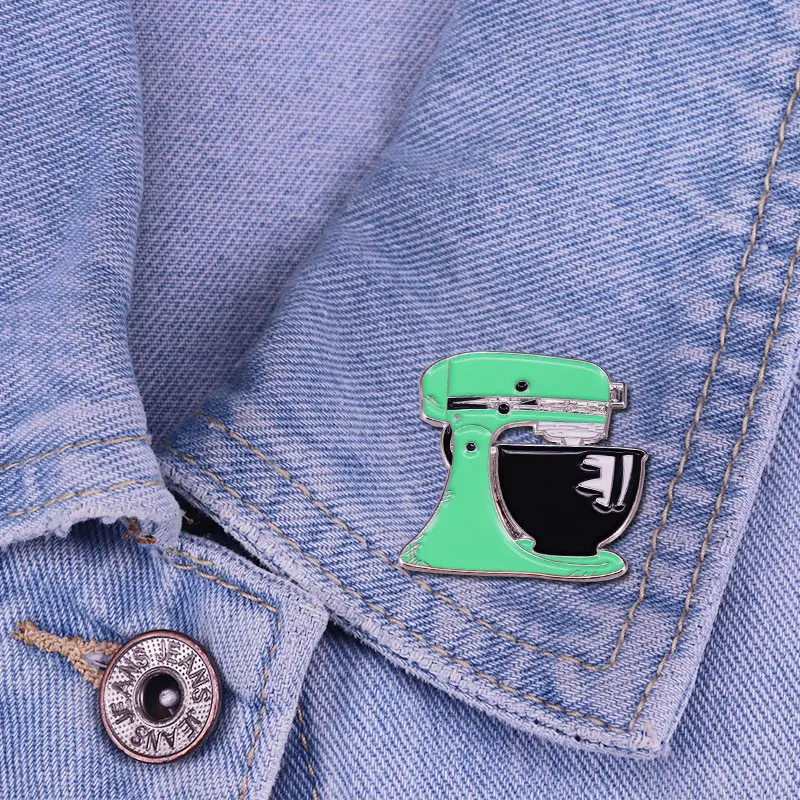 Эмалированная брошь мятно-зеленого цвета в стиле ретро с изображением миксера