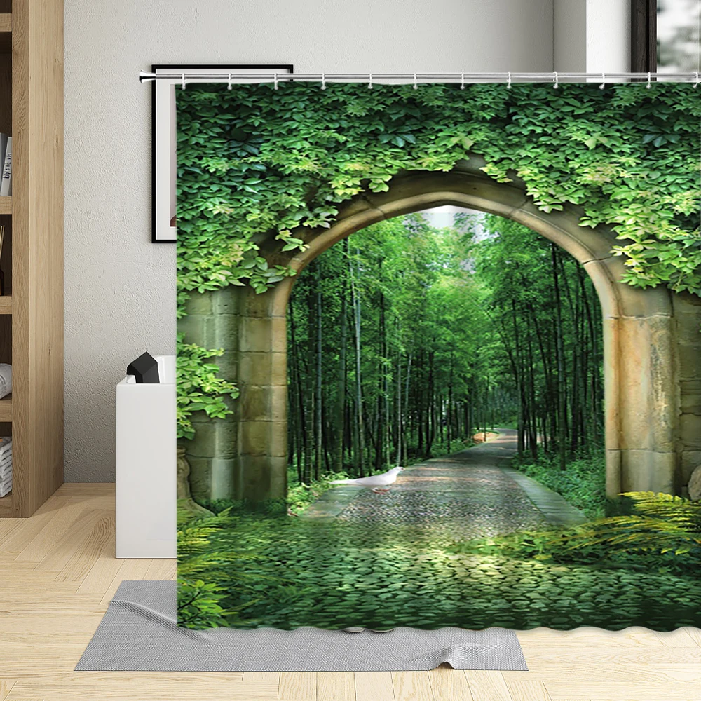 Занавески для душа с зеленым лесом, водонепроницаемые шторы из поли...