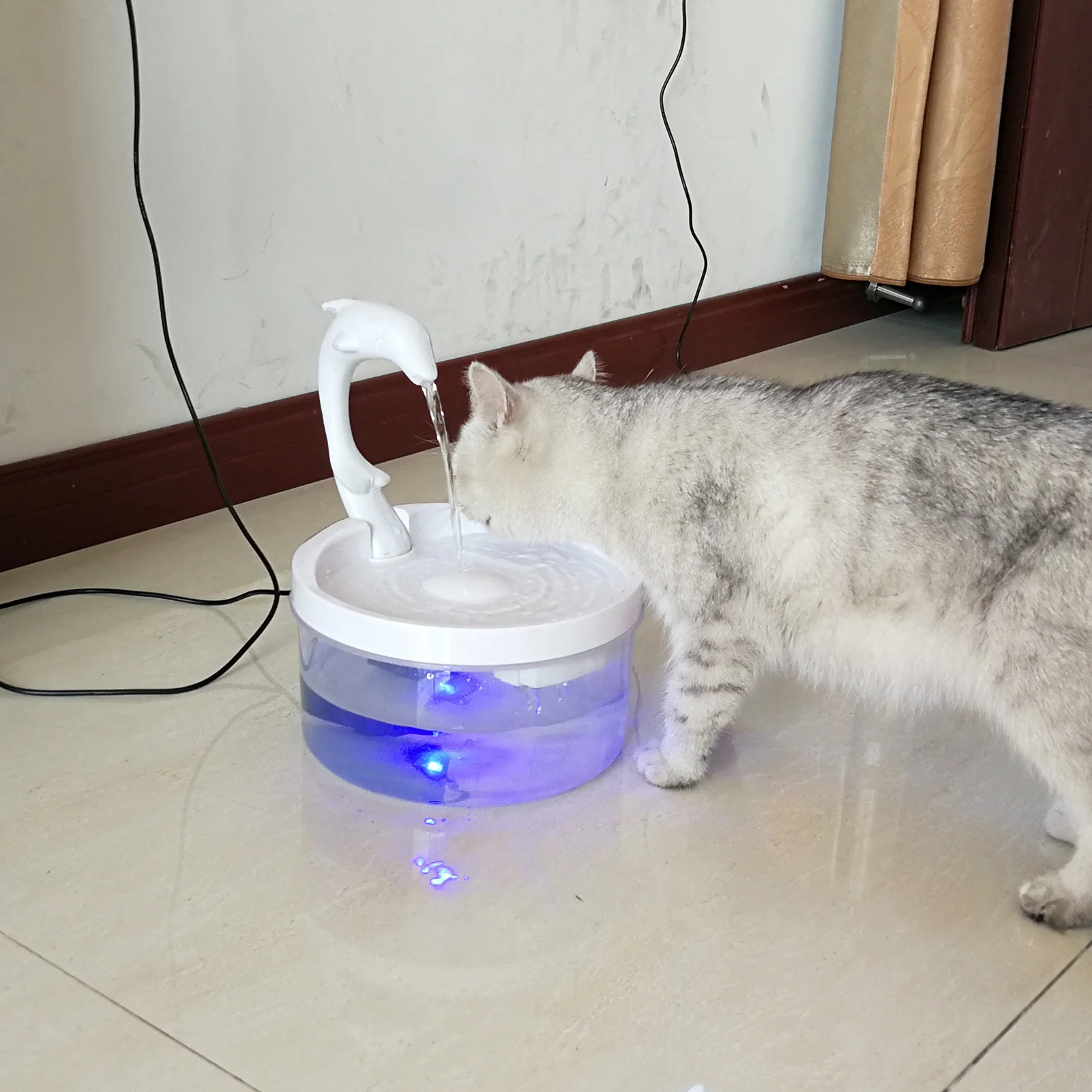 Диспенсер воды для домашних животных, кошек, светодиодный светильник, USB, фонтан в форме дельфина, кормушки поилки, автоматический питьевой фонтан для кошек и собак