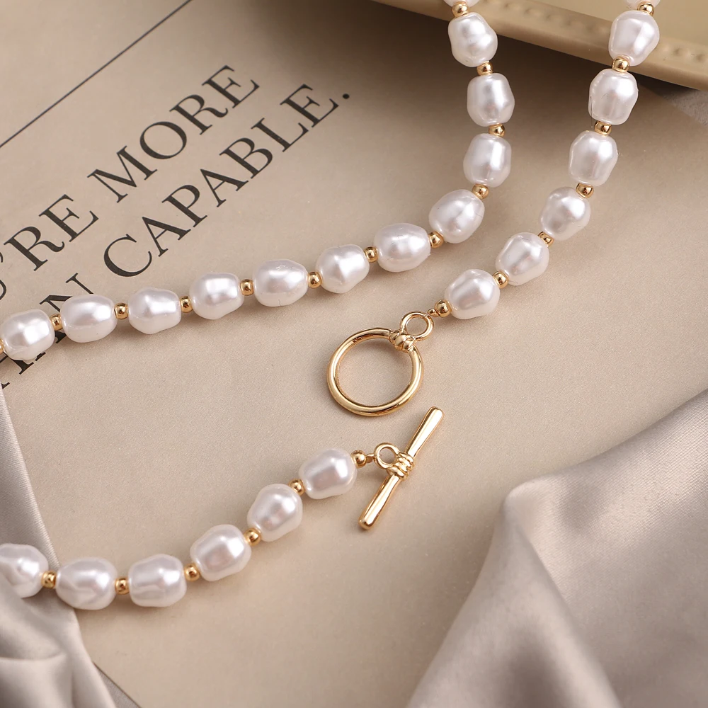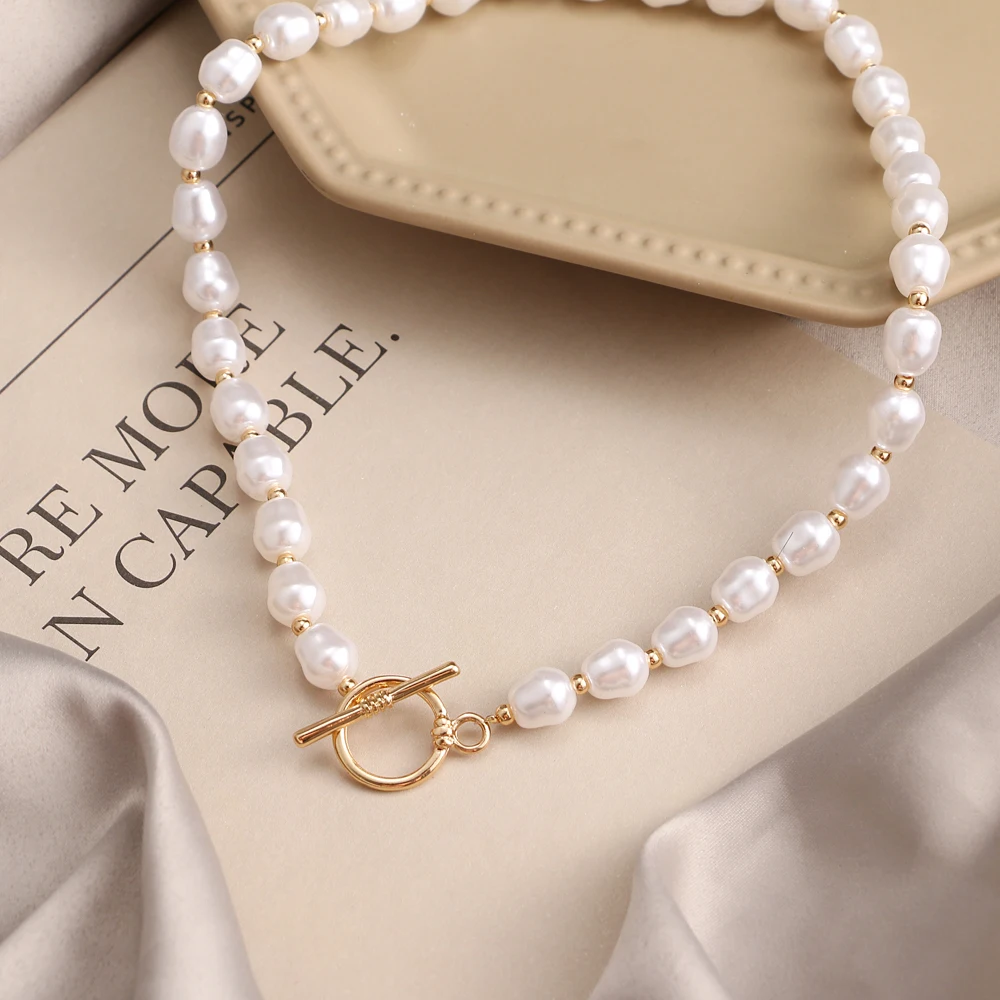 Цепочка с жемчугом женская, простой элегантный чокер неправильной ф...