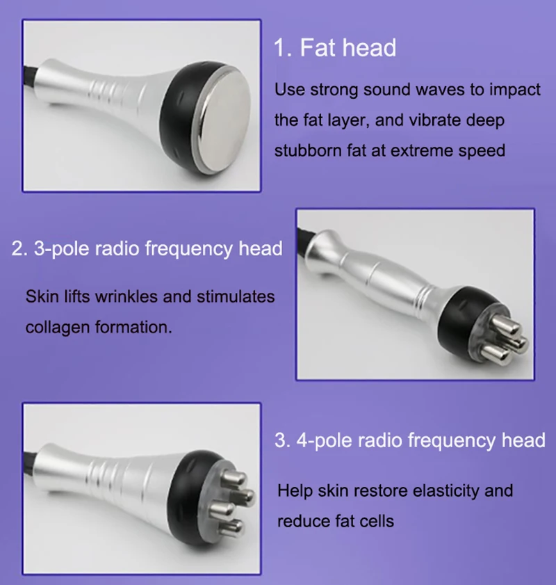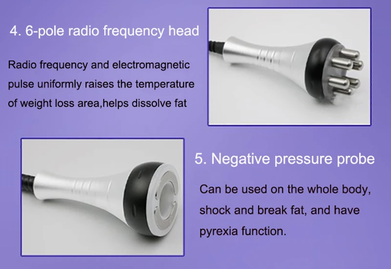 Техническое обслуживание:1) Каждый аксессуар является прецизионным устройством, поэтому, когда он используется и после использования, его необходимо поддерживать, чтобы не сократить срок службы.2) аксессуары должны быть обработаны аккуратно, и вы должны обратить внимание на удержание ручки. Не переносите выходную линию по желанию. Легко ослабить порт подключения внутри аксессуара, что приводит к плохим контактам и короткому замыканию.3) После использования аксессуаров не выбрасывайте их случайным образом. Их следует тщательно очистить чистящей жидкостью и чистой тканью и поместить на стойку. Рекомендуется использовать физиологический соленый или небольшое моющее средство для очистки поверхности.4) Если головка с сильным звуком 40K работает непрерывно в течение 30 минут, после работы в течение 30 минут зонд должен быть разрешен для отдыха в течение 5 минут, И затем продолжать использовать его после падения температуры поверхности. Когда аксессуар не используется, обязательно снимите аксессуары и поместите их на соответствующие стойки. Не дайте им высохнуть, чтобы не сжечь зонд.5) Вакуумная Головка отрицательного давления: Обязательно обратите внимание на очистку. После использования, когда эфирное масло или продукт в фильтре основного блока обнаружены полностью, продукт в фильтре должен быть очищен, чтобы избежать воздействия на всасывание.1. Трехполюсная укрепляющая головка:Высокочастотная 5 МГц выпускает биполярную радиочастоту, которая концентрирует энергию на челноке между двумя уровнями, а затем оказывает свой эффект, как того требует лечебный курс, так что сайт обработки может полностью поглощать радиочастотную энергию на 100%. Высокая частота позволяет телу нагреваться. Когда кожная ткань достигает 46 °C, коллагеновые волокна сразу же уменьшаются, что стимулирует секрецию более нового коллагена для заполнения усадки и потери коллагена, так что свободная кожа может чувствовать себя поднятой и затянутой. Кожаный эффект.2. Четырехполюсная радиочастота:Новейшая Технология радиочастотной радиосвязи с четверным полюсом может изменить электрическую полярность электрического поля в биологических тканях обработанной области в миллионы раз в течение 1 секунды, И способствует естественному движению сопротивления подкожной клетчатки для генерирования тепла, а тепло стимулирует дерму для выделения большего количества нового коллагена, Чтобы заполнить отверстие коллагена, тем самым удерживая леса кожи снова и восстанавливая упругость кожи. Взрывная обработка уменьшает жировые клетки, тем самым достигая эффекта удаления жира.3. Шестиполюсная укрепляющая головка:Новейшие шестиполюсные радиочастотные технологии кровообращения могут изменить электрическую полярность электрического поля в биологических тканях обработанной области в миллионы раз в течение одной секунды, И способствует естественному движению сопротивления подкожной клетчатки для генерирования тепла, а тепло стимулирует дерму для выделения большего количества нового коллагена, Чтобы заполнить отверстие коллагена, чтобы снова удерживать леса кожи и восстановить эластичность кожи.4. Радиочастота отрицательного давления:Используя вакуумное всасывание и уникальный дизайн ролика, кожа и Подкожная мышечная ткань вытягиваются, а затем через де