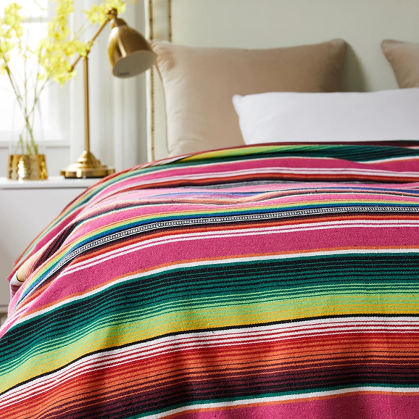 Покрывало в мексиканском стиле с радужными полосками, покрывало для...