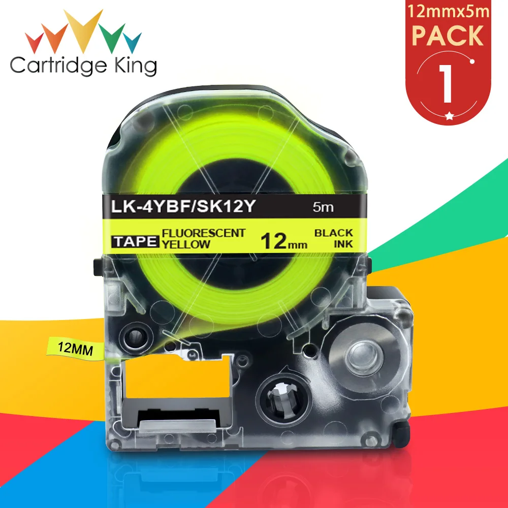 12 мм для флуоресцентных лент Epson SK12Y LK-4YBF черный на флуоресцентных желтых совместимых для Epson King Jim LW-400 LW-300