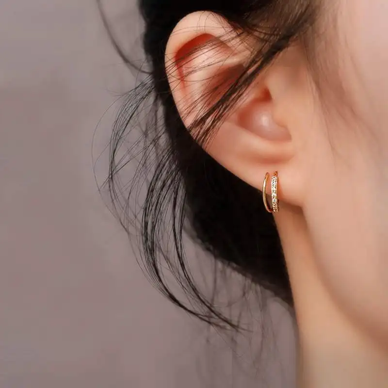 Новая мода вращающийся тонкий минимальной, серьги со шпилькой, для женщин, блестящие микро с украшением в виде кристаллов Золотой серьга геометрической формы и гвоздики аксессуары