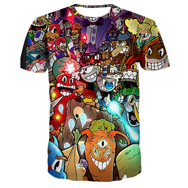 Летняя детская футболка Cuphead Mugman с 3D принтом, забавные детские Топы И Футболки Для девочек и мальчиков, дышащие Мультяшные футболки унисекс с круглым вырезом и коротким рукавом