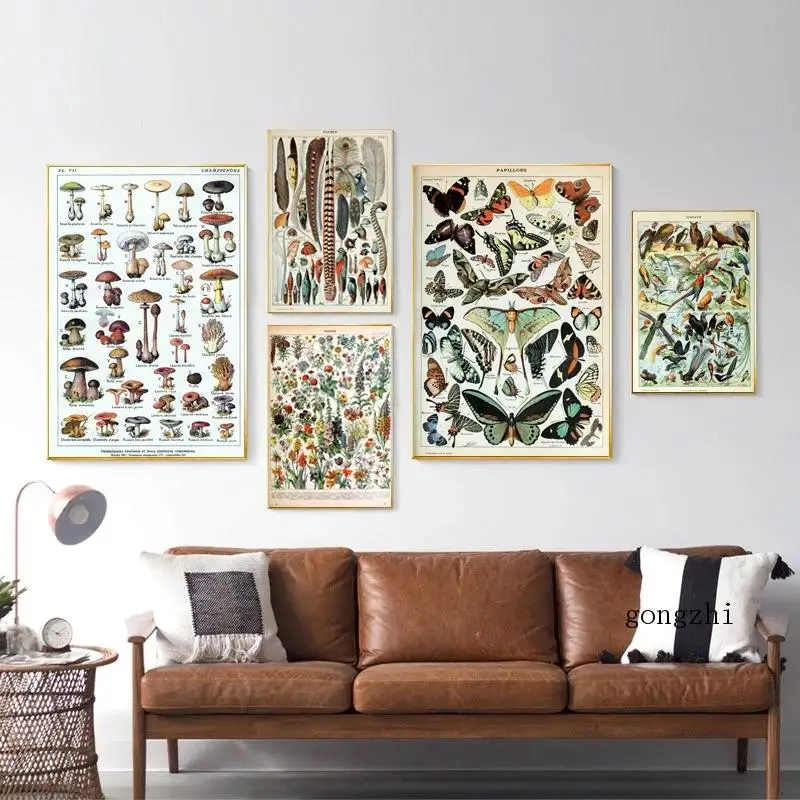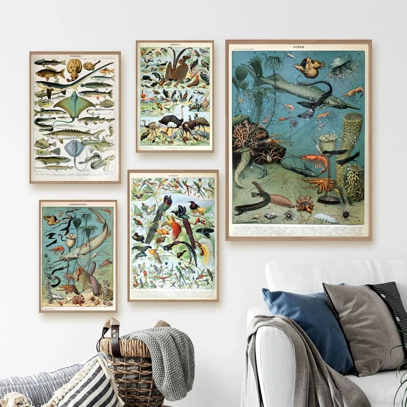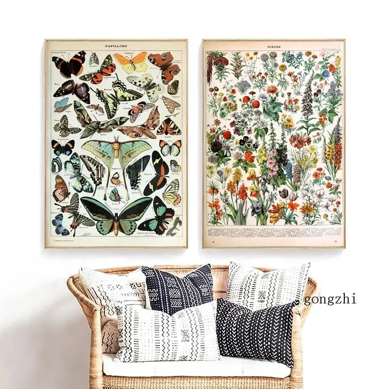 Французский Винтаж Морские обитатели наземная флора и фауна плакат живопись на холсте Бабочка печать растения животные настенные картины