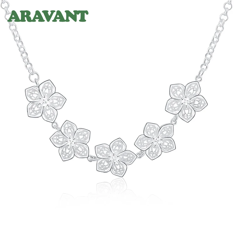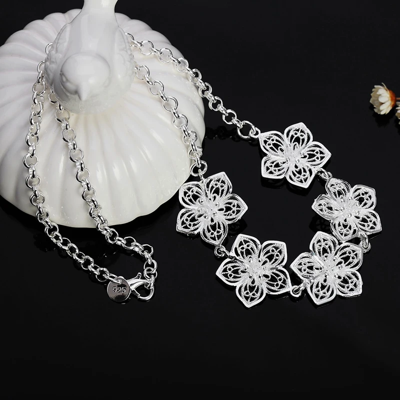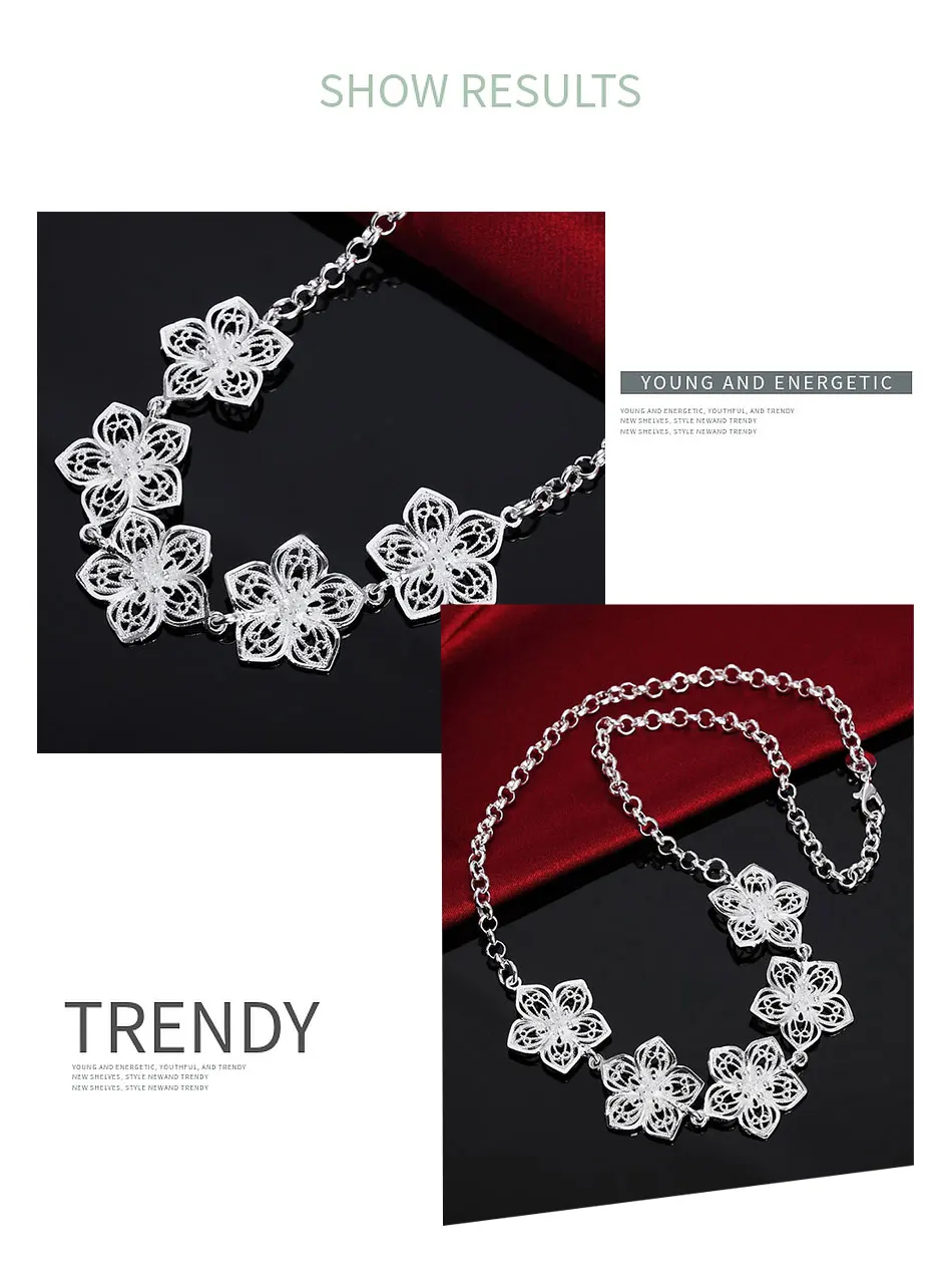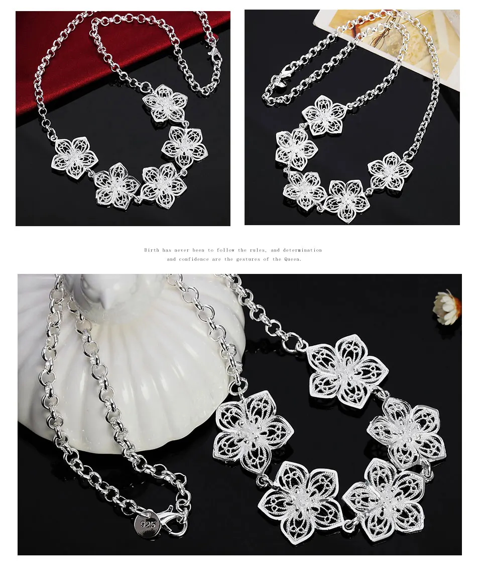 925 серебро цветок ожерелье цепь для женщин Свадебные Ювелирные изделия Подарки