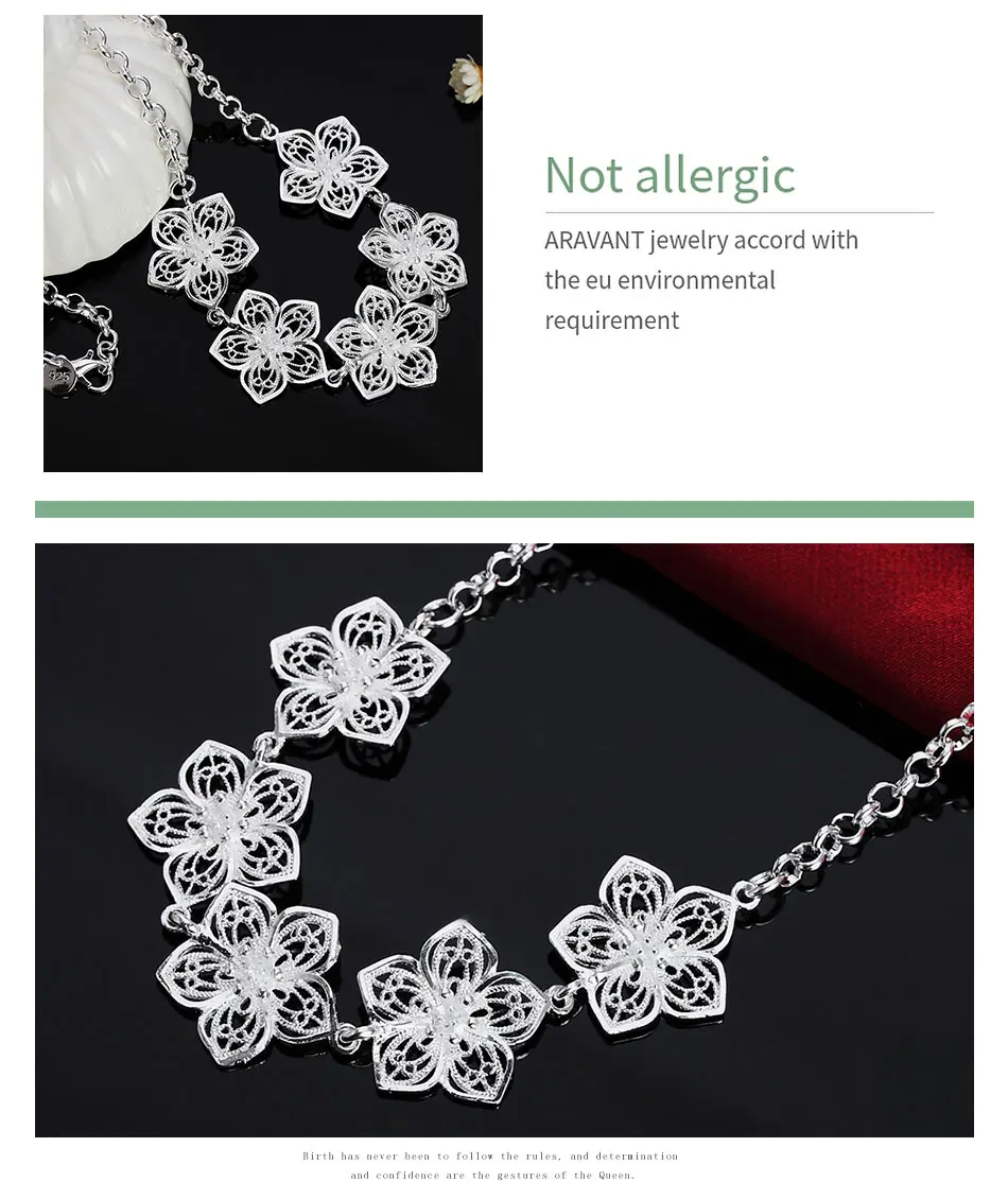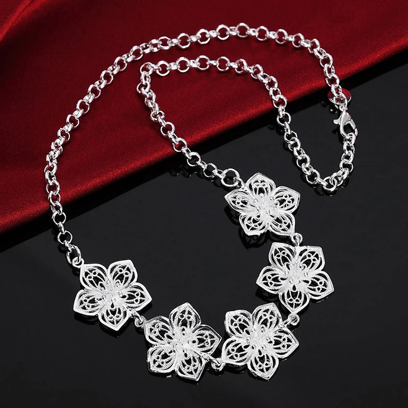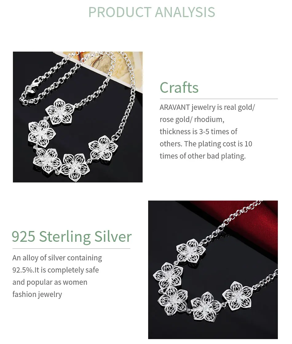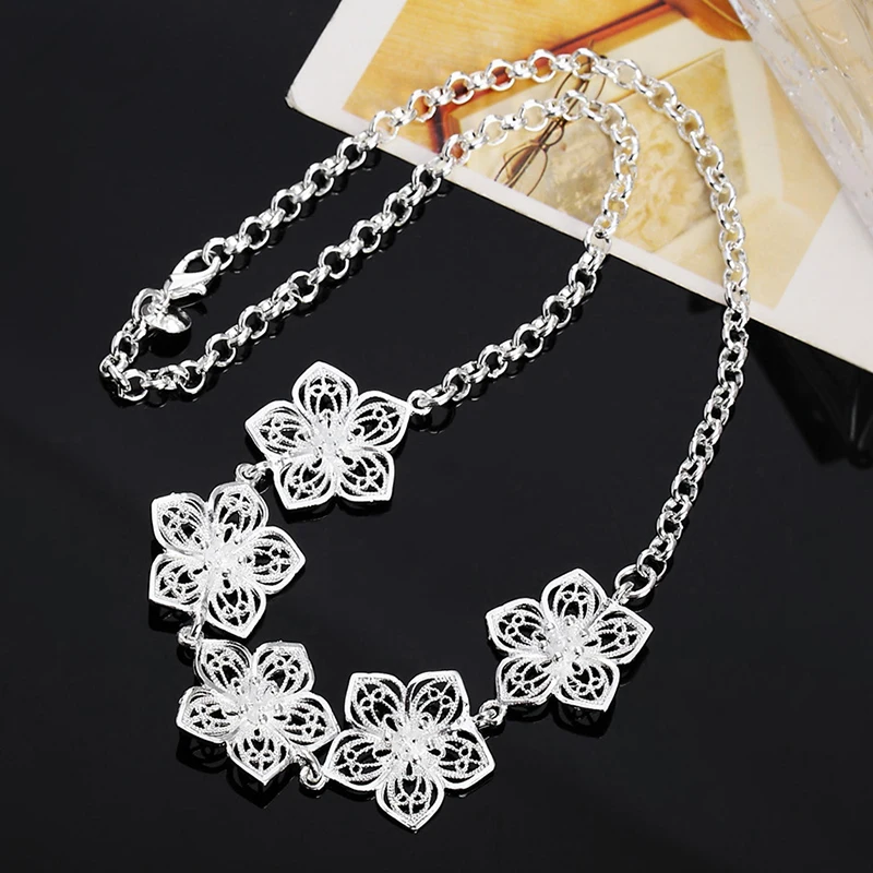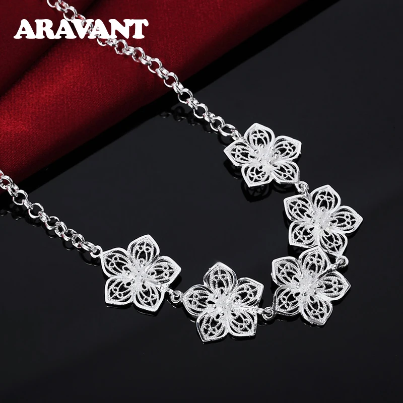 925 серебро цветок ожерелье цепь для женщин Свадебные Ювелирные изделия Подарки
