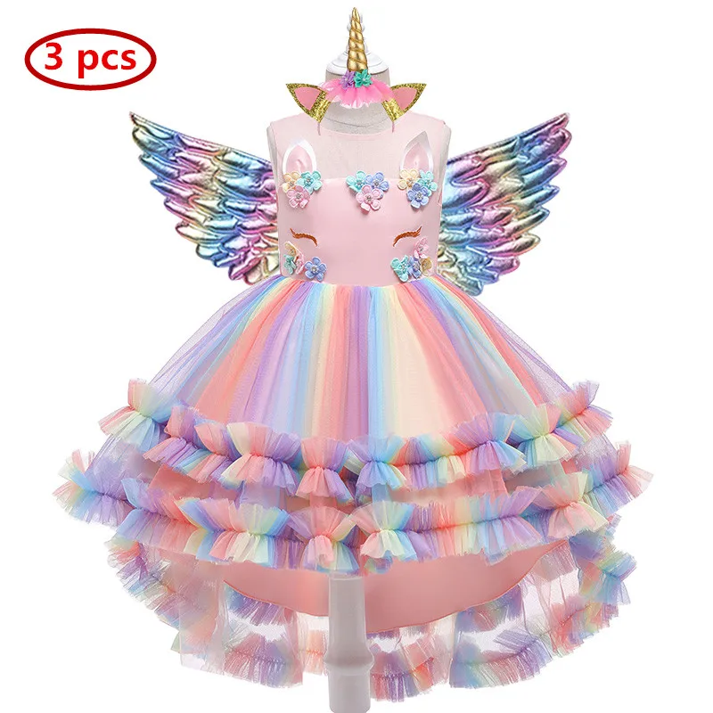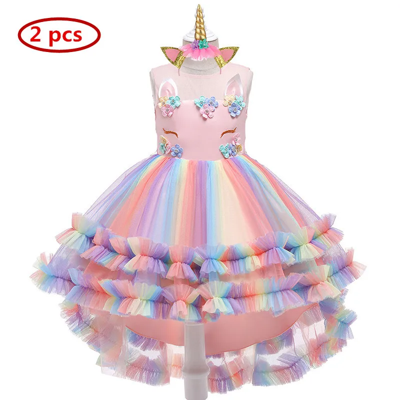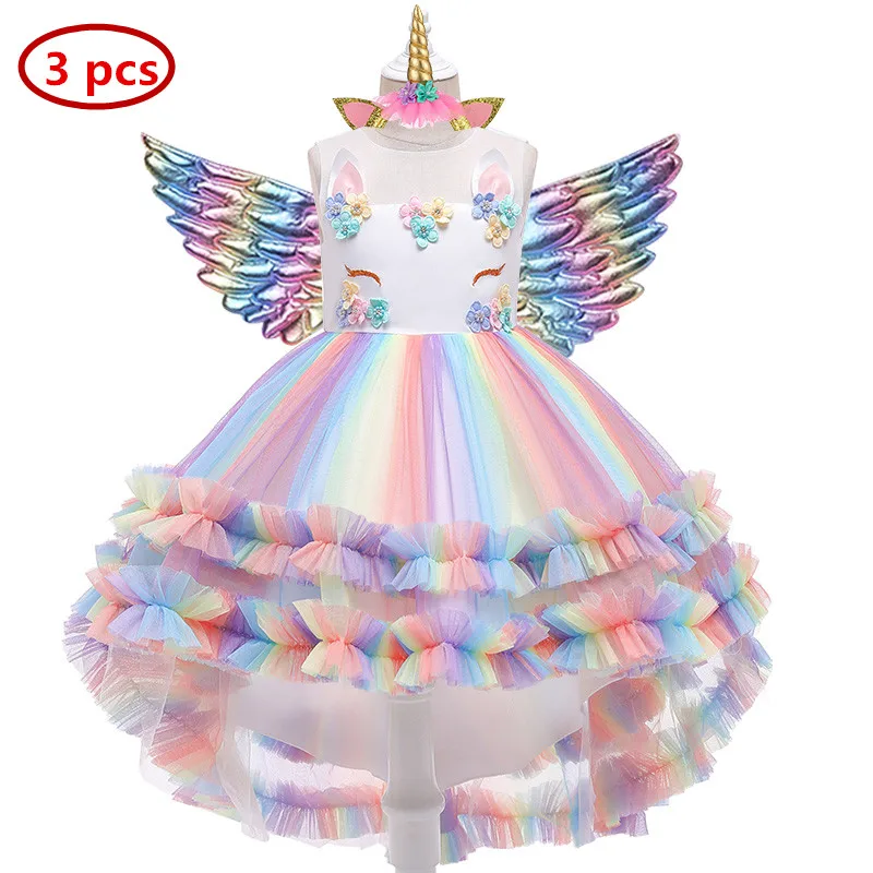 Длинное платье с единорогом для девочек, платье принцессы на день р...