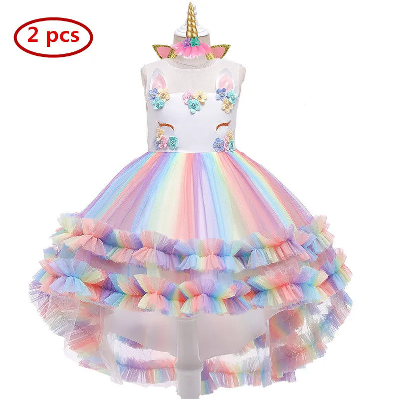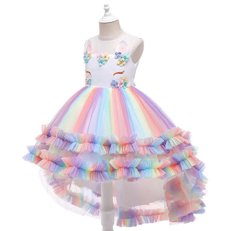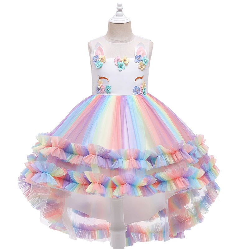 Детское длинное платье для девочек, с единорогом, радужной расцветк...