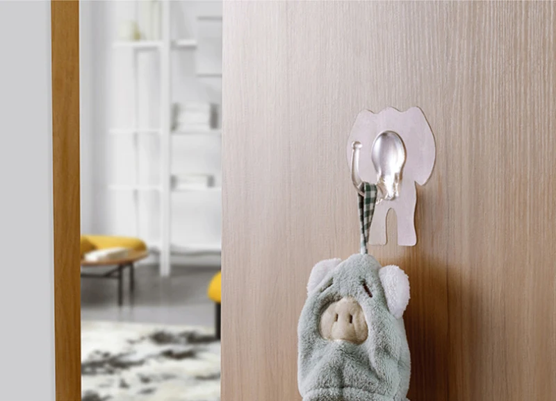 Прозрачный Punch-Бесплатные Крючки сильный самоклеящиеся двери стены Вешалки Водонепроницаемый слон Форма всасывания тяжелой нагрузки стеллаж для выставки товаров Кубка присоски