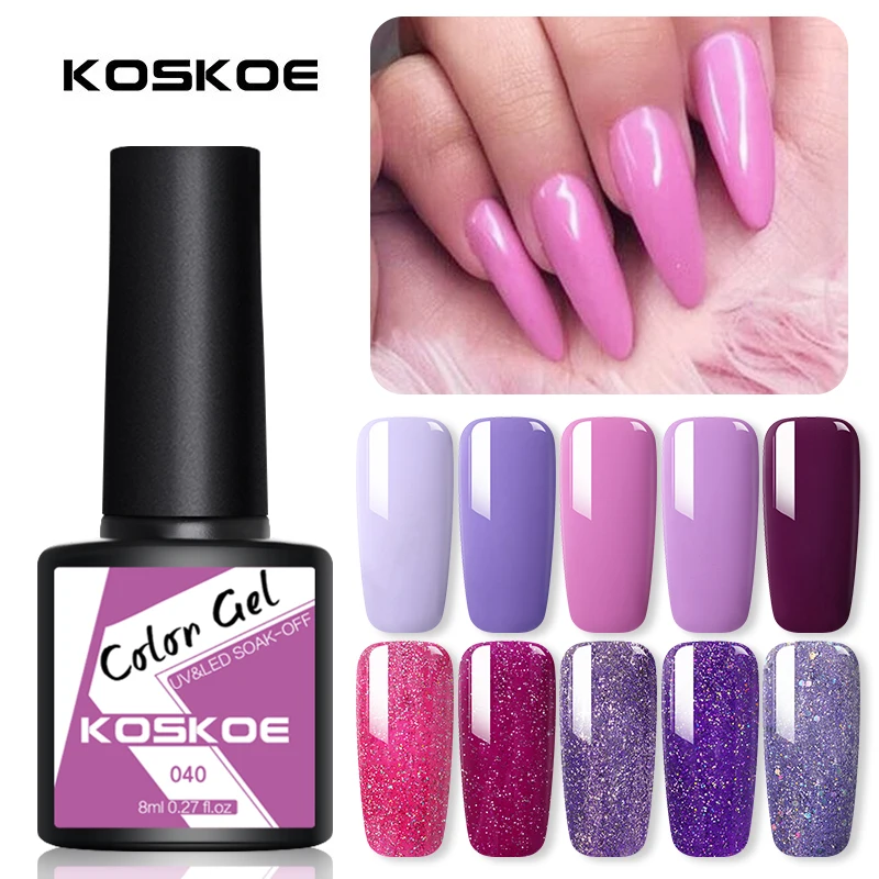 KOSKOE 8 мл Сияющий Блестящий Гель-лак для ногтей фиолетовый цвет! Полупостоянная УФ-гель Лаки био-Гели Soak Off УФ светодиодный гель для дизайна ногтей Лаки es