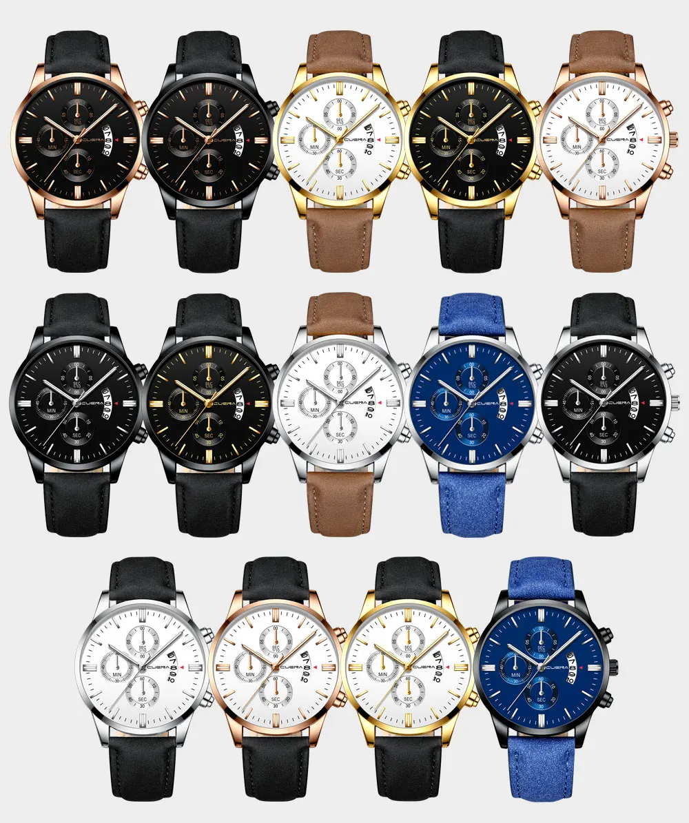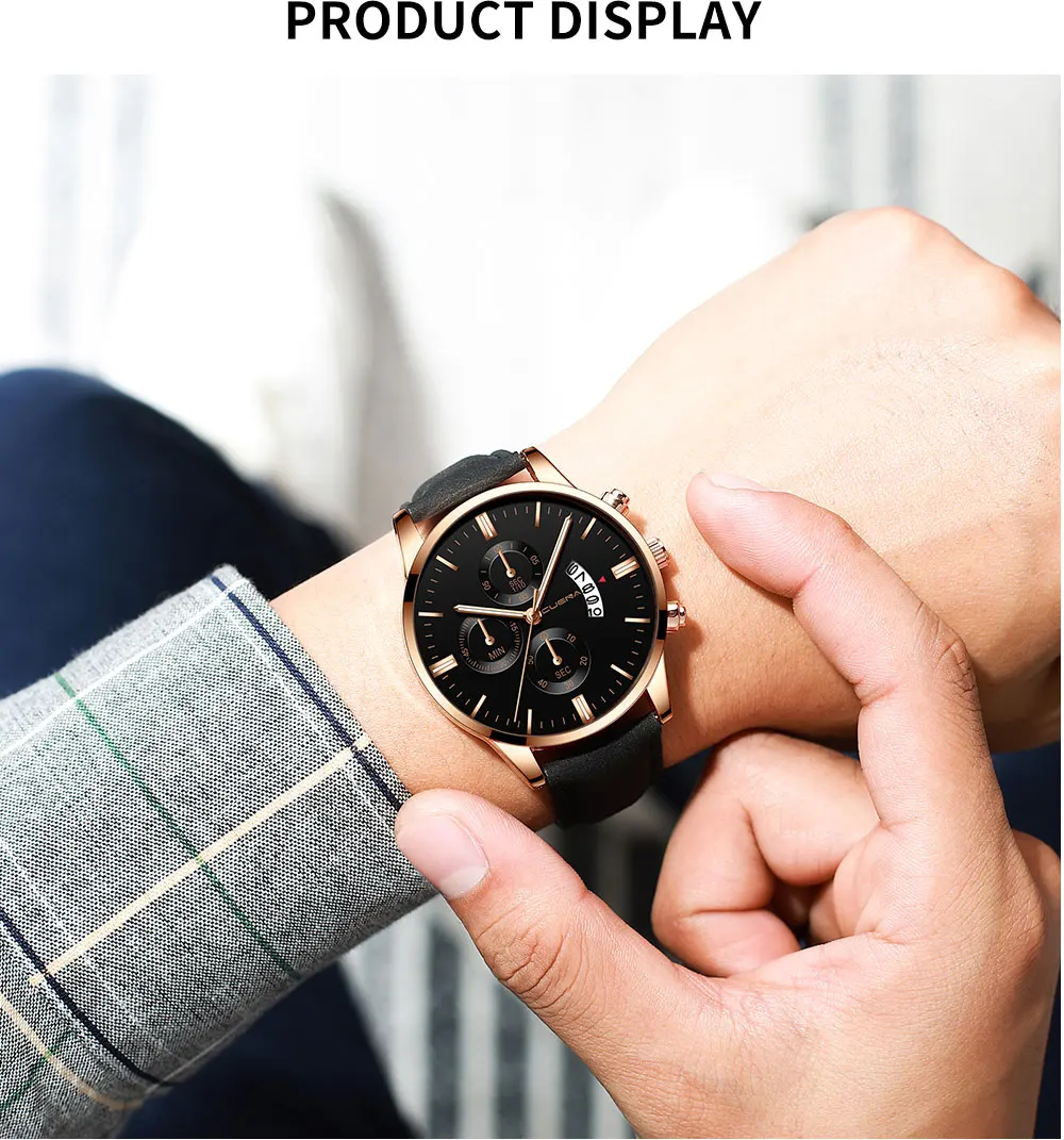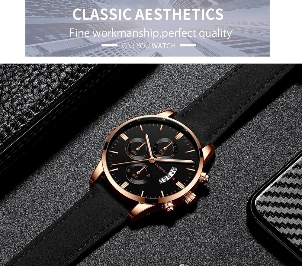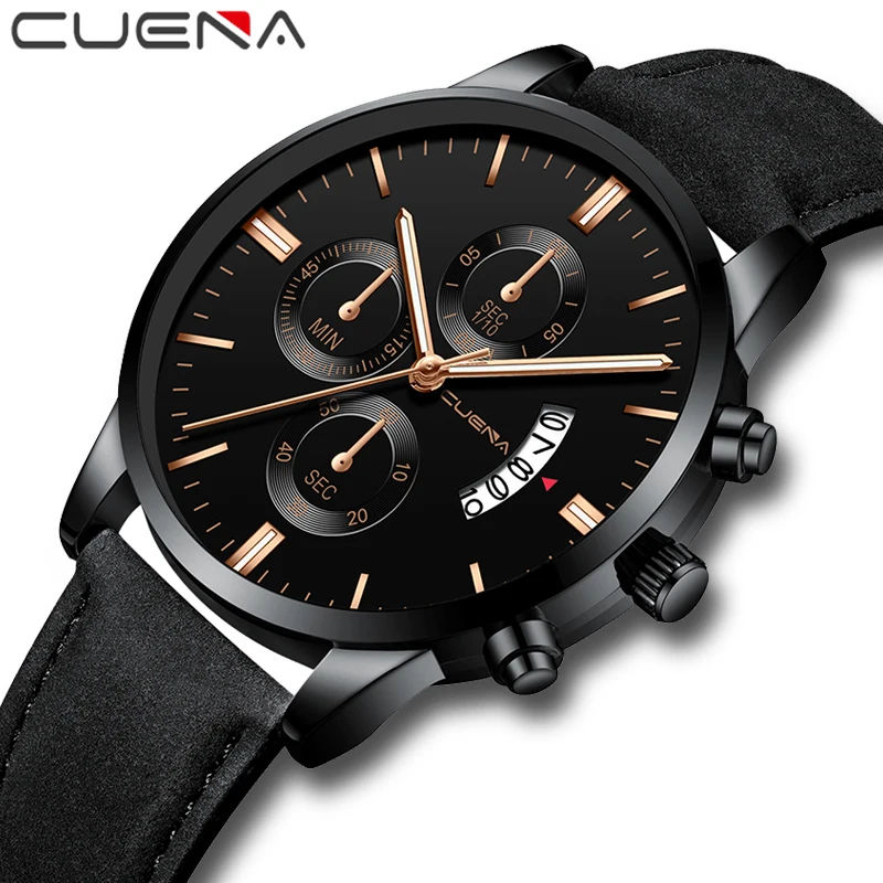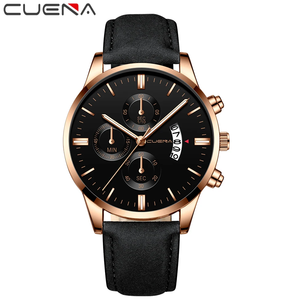 Мужские модные спортивные часы CUENA, кожаный ремешок, Кварцевые ан...