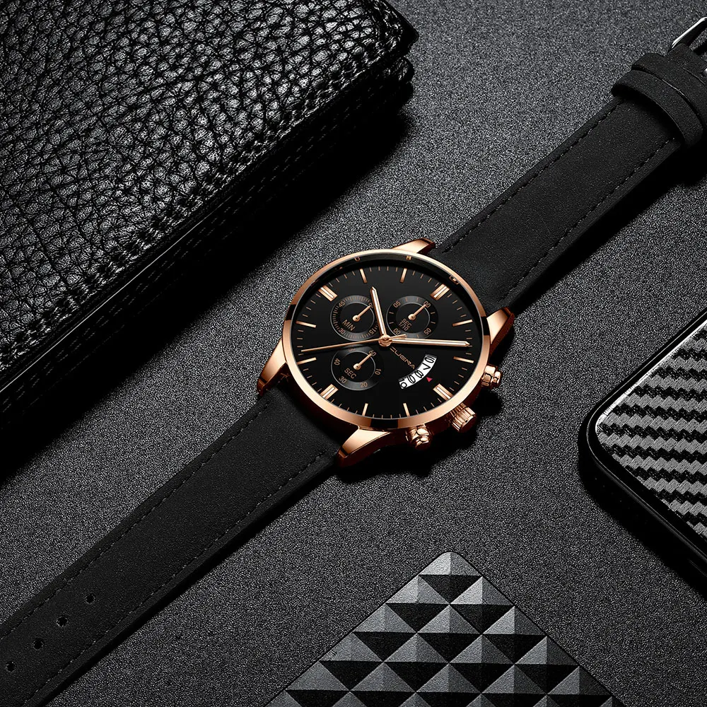 Часы наручные CUENA Мужские кварцевые в стиле милитари, роскошные Брендовые спортивные повседневные с кожаным ремешком, с датой