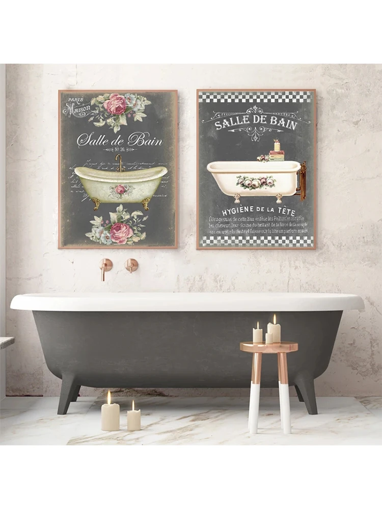 DIY алмазная живопись мозаика украшения ванной картины винтажные плакаты Bain доска потертая настенная живопись вышивка