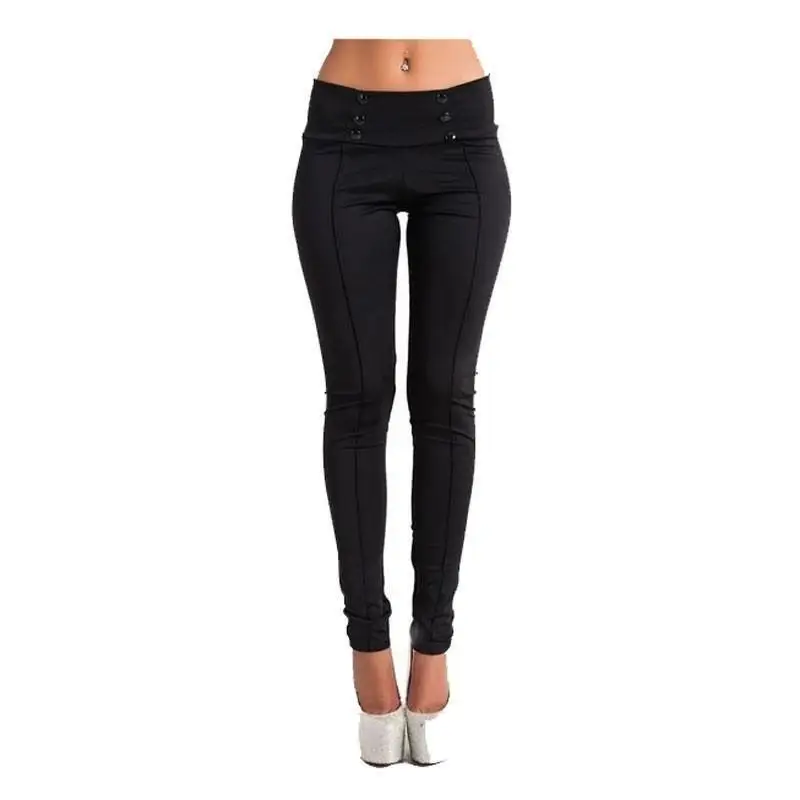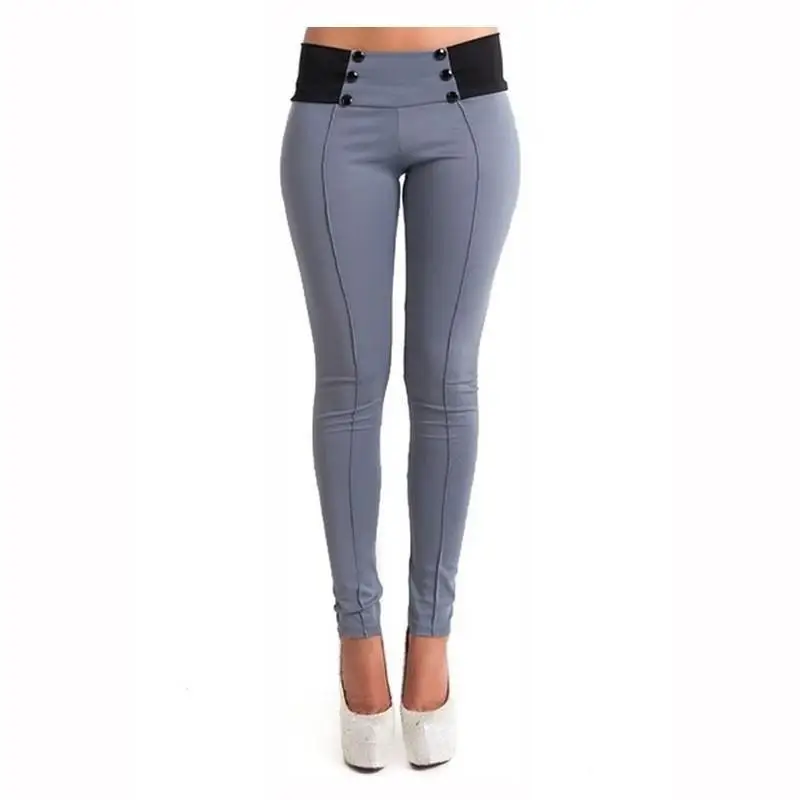 Черные, серые, белые женские брюки, повседневные эластичные облегающие леггинсы с пуговицами, модные однотонные узкие брюки-карандаш, удобные топы