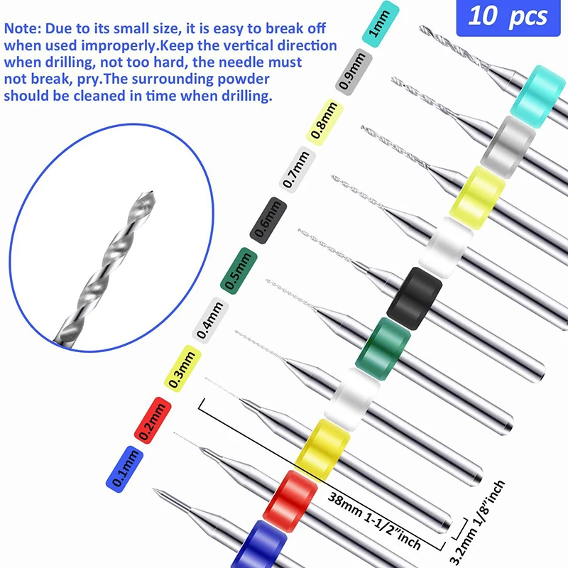 Штифт тиски ручная дрель:Материал: сплавЦвет: черныйРазмеры: 3,74 дюйма/9,5 см в длинуКак использовать pin тиски:Шаг 1: выньте подходящий сверло и наполовину Отвинтите тисненую головку.Шаг 2: наполовину вставьте сверло и плотно прикрутите головку.Шаг 3: цель место, где вы собираетесь просверлить отверстие, используйте одну руку, чтобы зафиксировать верхнюю часть ручки, используя другую руку, чтобы повернуть ручку.48 шт. Сверло:Материал: стальЦвет: серебристыйРазмер: 3 шт. 0,5, 0,6, 0,7, 0,8, 0,9, 1,0 мм Размер, всего 18 шт.; 2 шт. 1,1, 1,2, 1,3, 1,4, 1,5, 1,6, 1,7, 1,8, 1,9, 2,0 мм Размер, всего 20 шт.; 1 шт. 2,1, 2,2, 2,3, 2,4, 2,5, 2,6, 2,7, 2,8, 2,9, 3,0 мм размер, всего 10 штук10 шт. мини-сверла PCB:Материал: Вольфрамовая стальЦвет: цвет отправляется случайным образомРазмер: 0,3-1,2 ммДиаметр хвостовика прибл. 3,175 мм, общая длина прибл. 38 мм, которые подходят для обработки печатных плат, нормальных FR-4, CEM-3, SMT, ЧПУ, пресс-форм, пластика, печатной платы, углеродного волокна, композитных плат и так далееПосылка включает:1 x Pin Тиски48 x спиральные бурильные сверла10 мини-сверл PCB