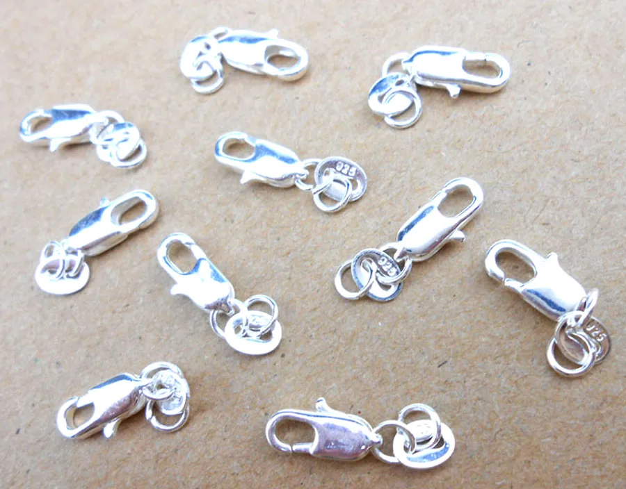 Застежки-лобстеры из чистого серебра 925 пробы с биркой 925 для ожерелья + открывающиеся кольца, 20 шт.
