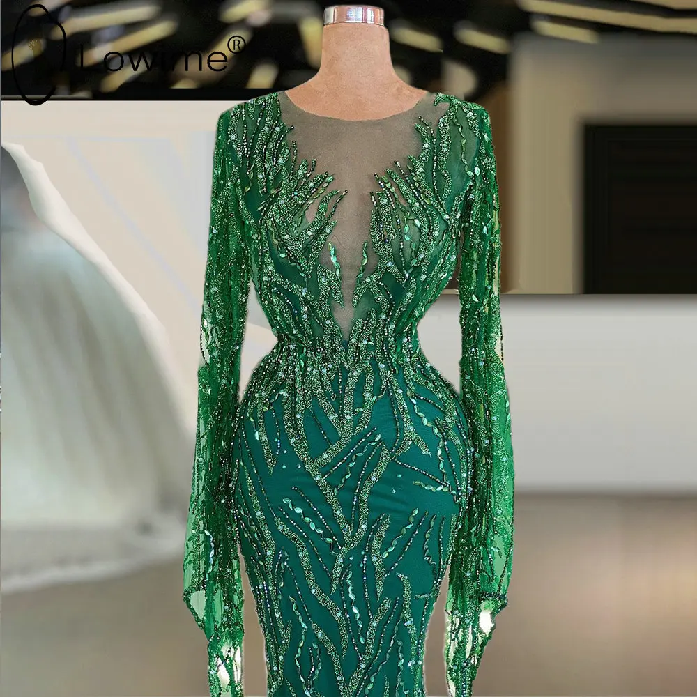 Lowime зеленый длинный рукав в арабском стиле Русалка вечерние платья для Для женщин Роскошные Бисер Vestidos Формальное вечерние платья 2021