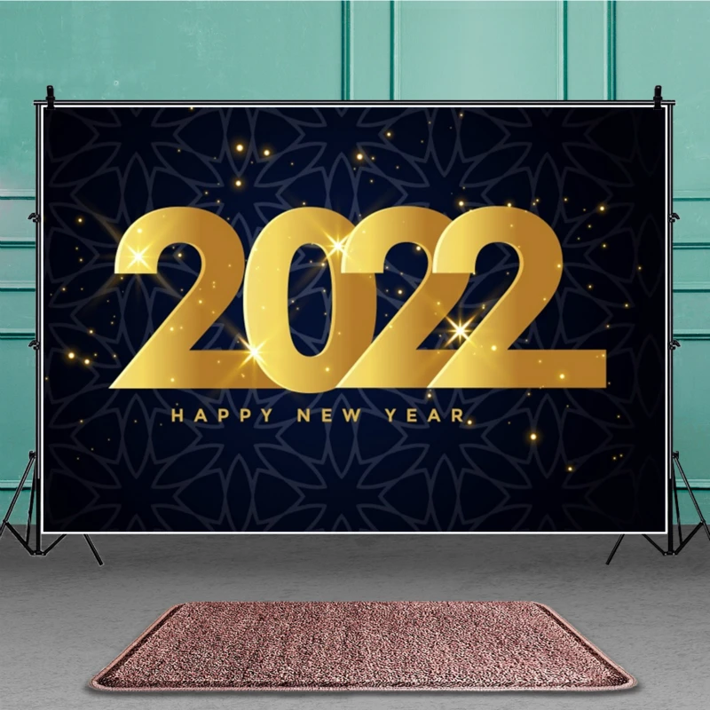 2022 Виниловый фон для фотографий с новогодним будильником и золотым фоном