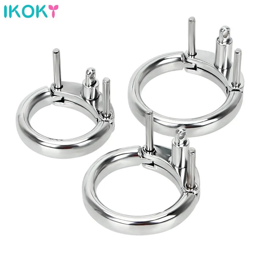 IKOKY удерживающие клетка аксессуары для мужской мастурбации дополнительные кольцо верности для пениса устройства 3 Размеры выбрать мужской пенис замок