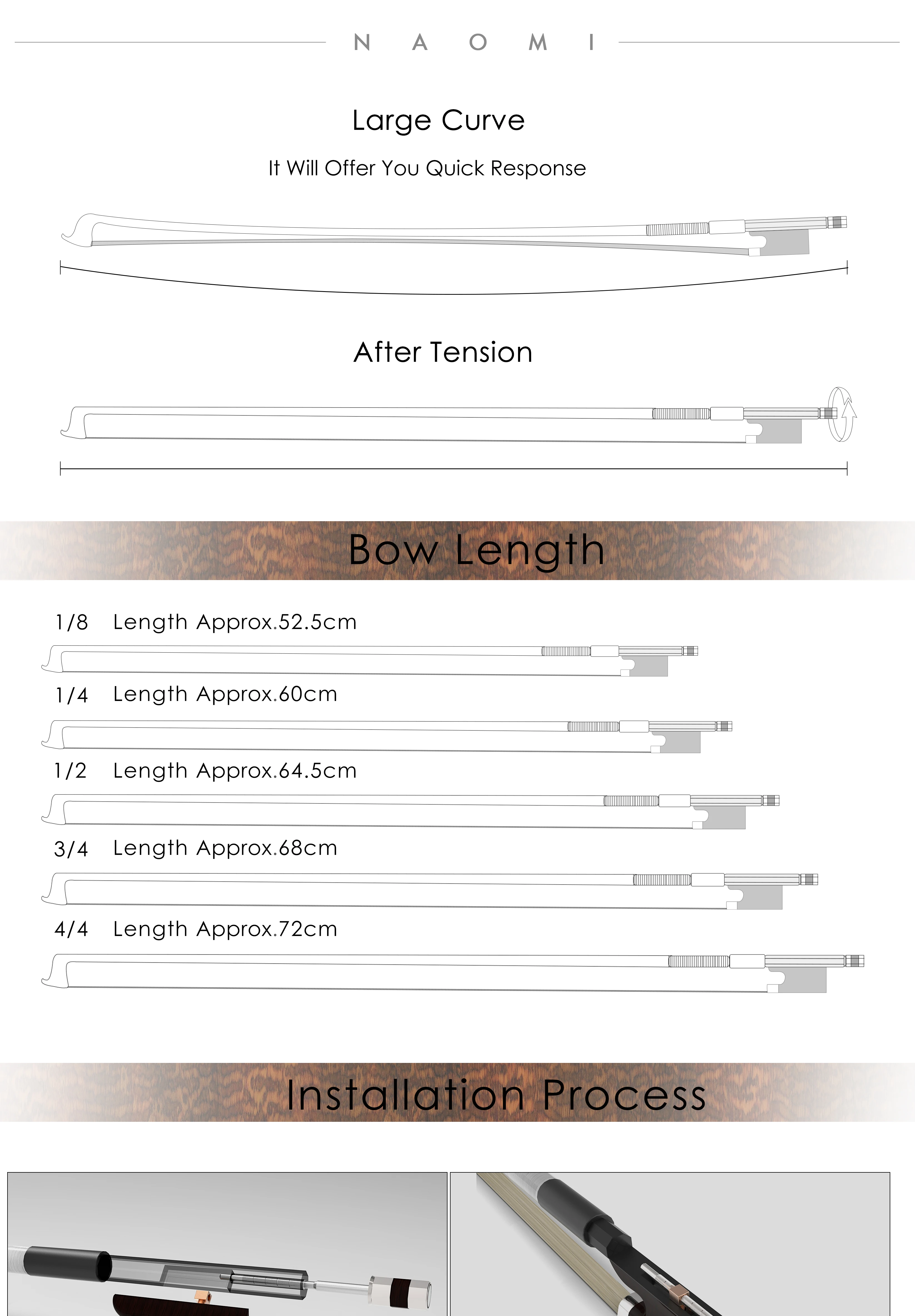 Стиль барокко 4/4 Виолончель бант, длина около 72 см.